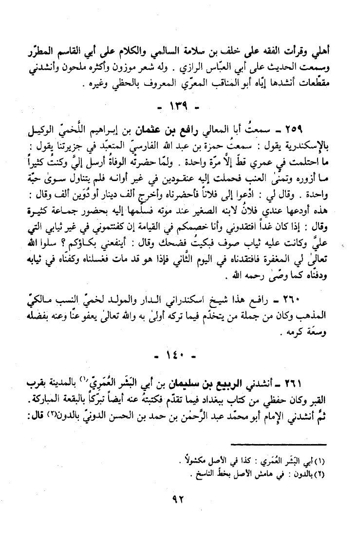 260 - رَافِعٌ هَذَا شَيْخٌ إِسْكَنْدَرَانِيُّ الدَّارِ وَالْمَوْلِدِ لَخْمِيُّ النَّسَبِ مَالِكِيُّ الْمَذْهَبِ وَكَانَ مِنْ جُمْلَةِ مَنْ يَتَخَدَّمُ فِيمَا تَرَكَهُ أَوْلَى بِهِ وَاللَّهُ تَعَالَى يَعْفُو عَنَّا وَعَنْهُ بِفَضْلِهِ وَسِعَةِ كَرَمِهِ