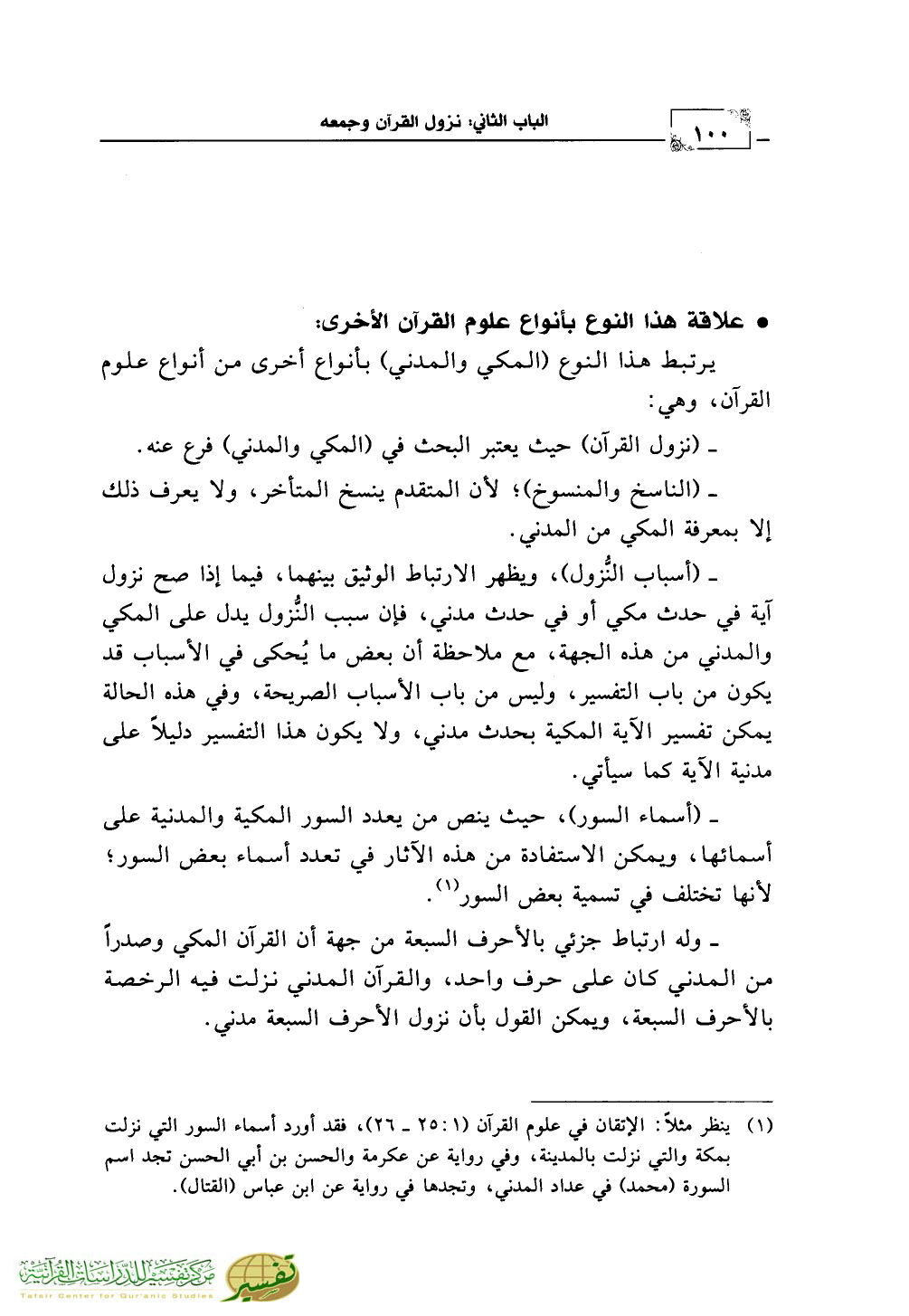 • (نزول القرآن) حيث يعتبر البحث في (المكي والمدني) فرع عنه.