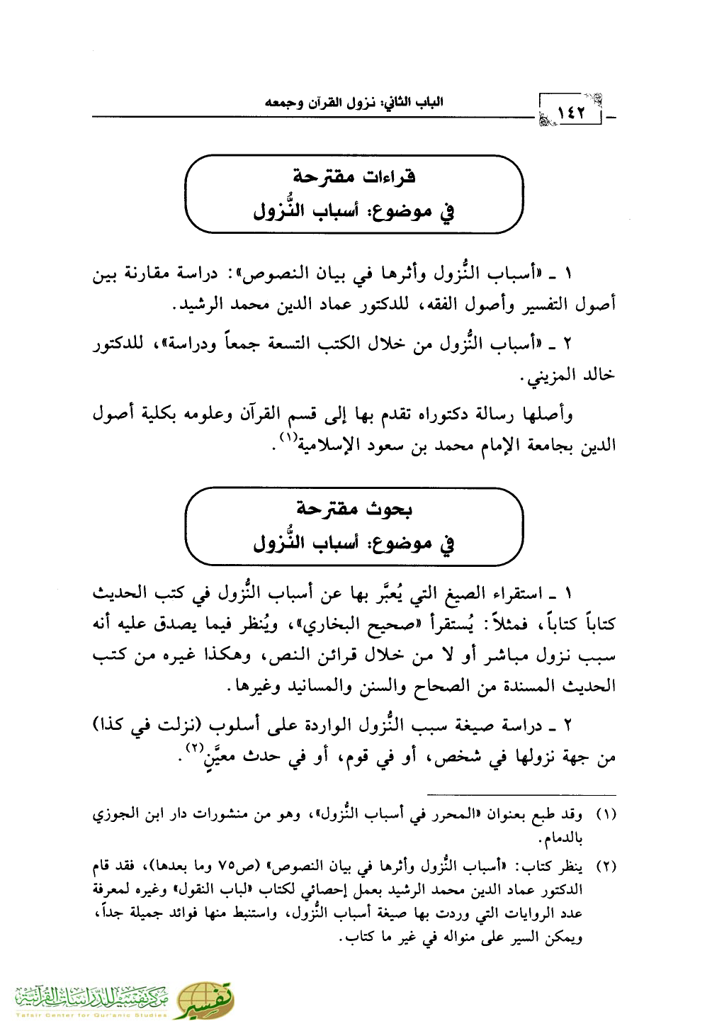 بحوث مقترحة في موضوع: أسباب النُّزول