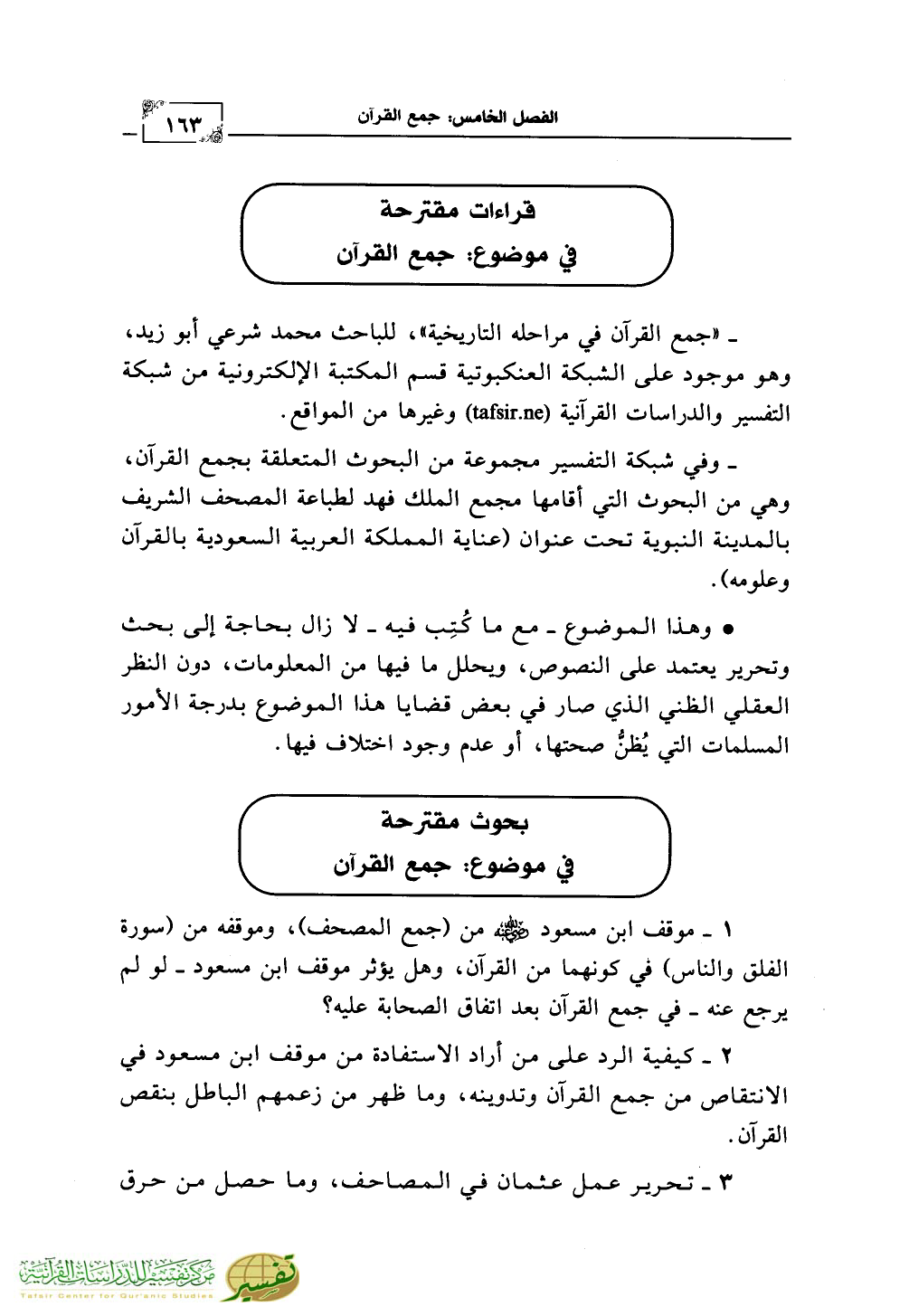 • «جمع القرآن في مراحله التاريخية»، للباحث محمد شرعي أبو زيد، وهو موجود على الشبكة العنكبوتية قسم المكتبة الإلكترونية من شبكة التفسير والدراسات القرآنية (tafsir.ne) وغيرها من المواقع.