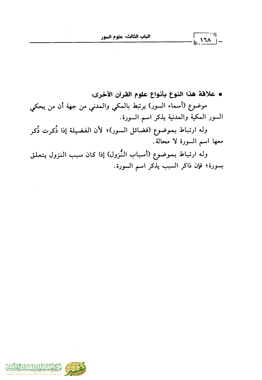موضوع (أسماء السور) يرتبط بالمكي والمدني من جهة أن من يحكي السور المكية والمدنية يذكر اسم السورة.