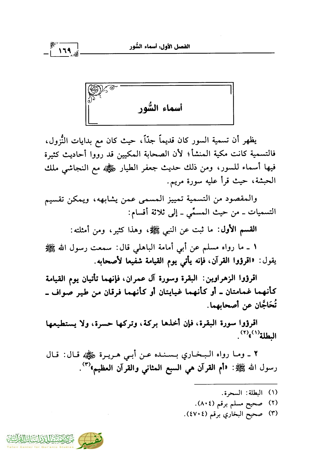 1 - ما رواه مسلم عن أبي أمامة الباهلي قال: سمعت رسول الله صلّى الله عليه وسلّم يقول: «اقرؤوا القرآن، فإنه يأتي يوم القيامة شفيعا لأصحابه.