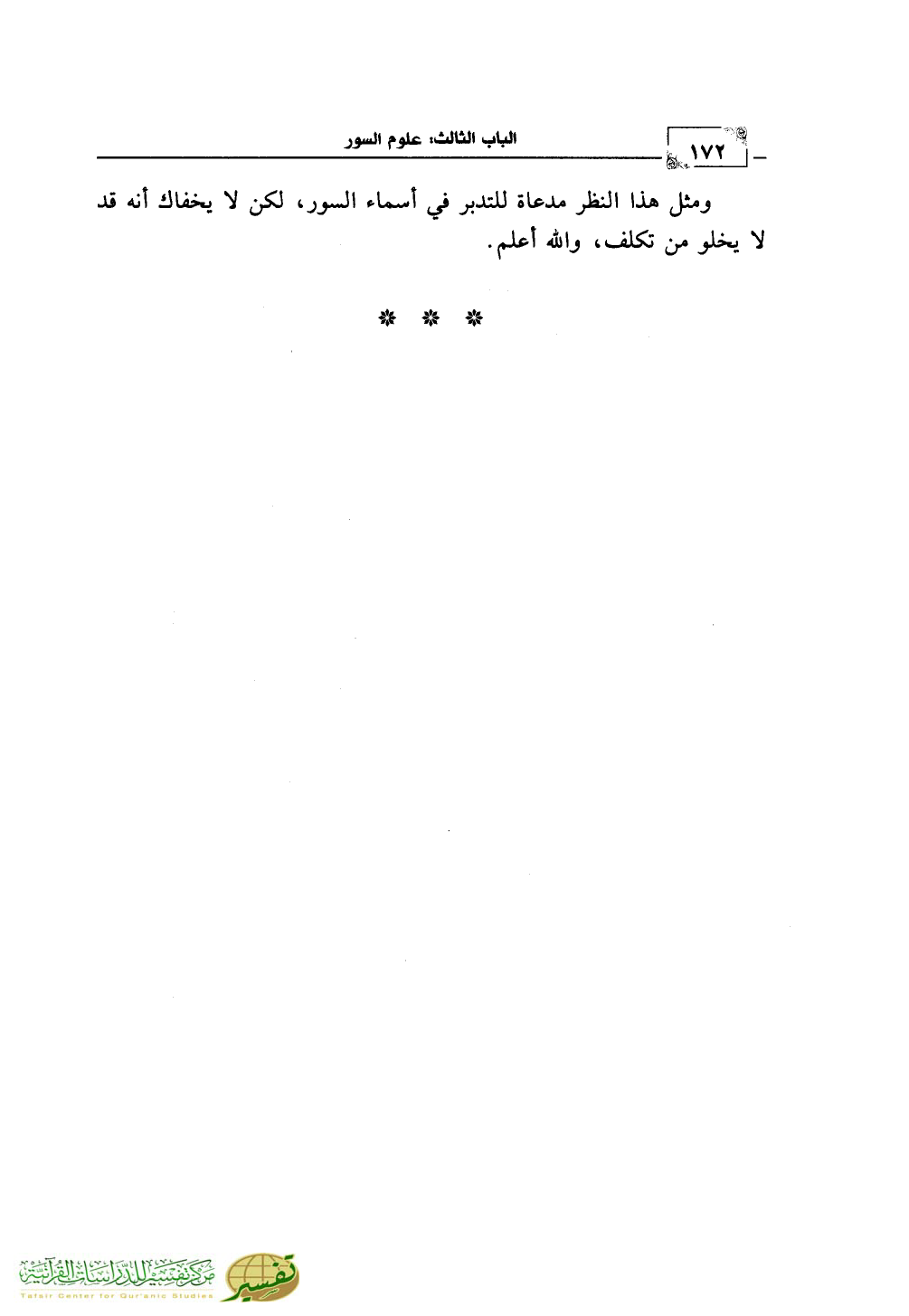 ومثل هذا النظر مدعاة للتدبر في أسماء السور، لكن لا يخفاك أنه قد لا يخلو من تكلف، والله أعلم.