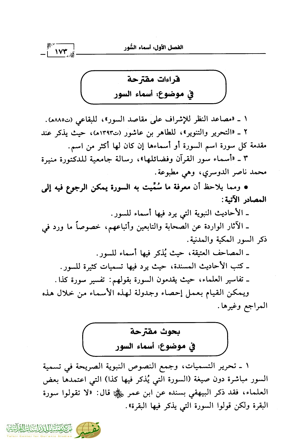 بحوث مقترحة في موضوع: أسماء السور