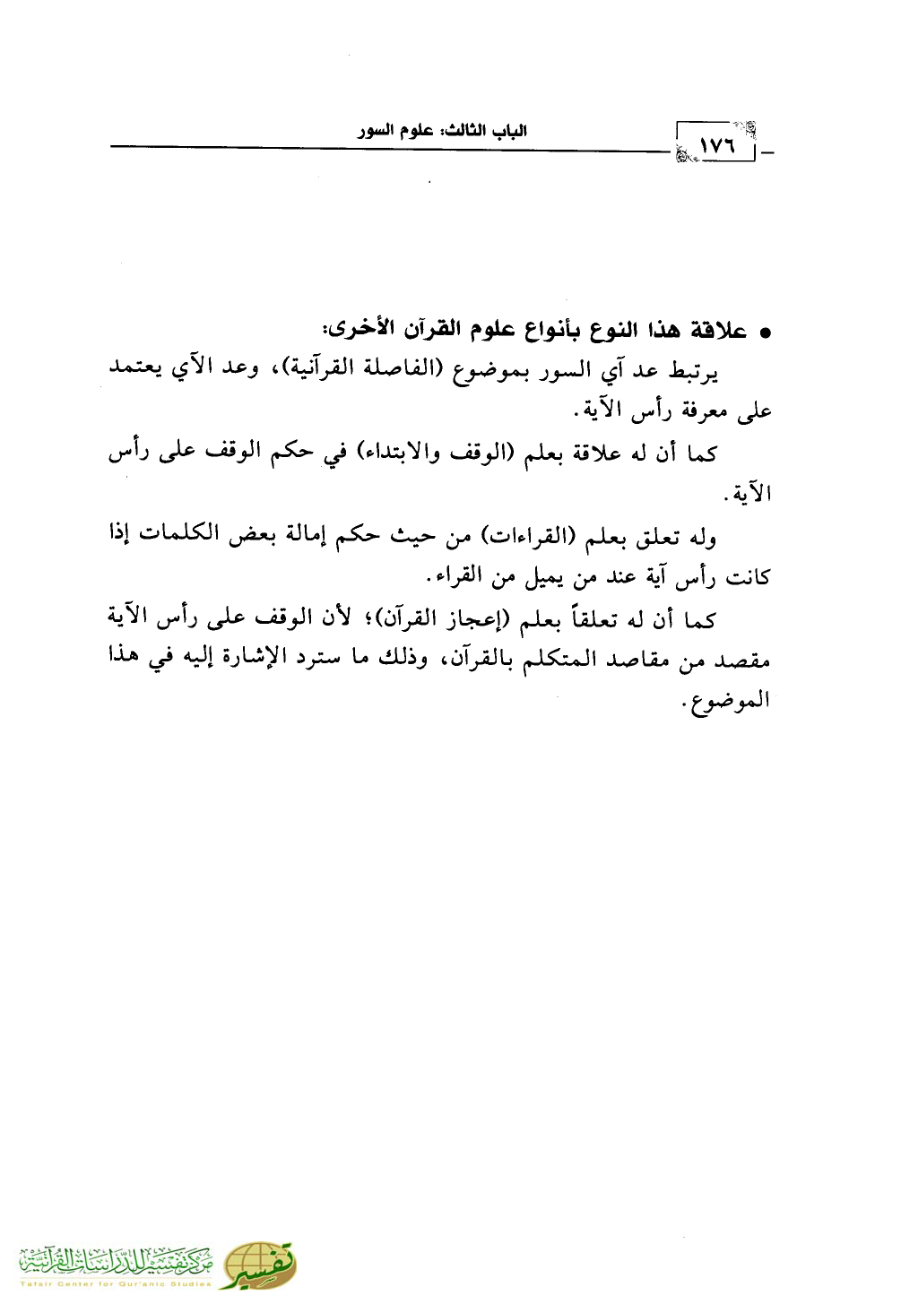 وله تعلق بعلم (القراءات) من حيث حكم إمالة بعض الكلمات إذا كانت رأس آية عند من يميل من القراء.