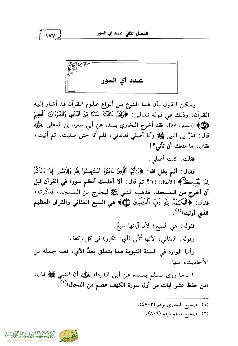 وقوله: المثاني؛ لأنها تُثنَّى (أي: تكرر) في كل ركعة.