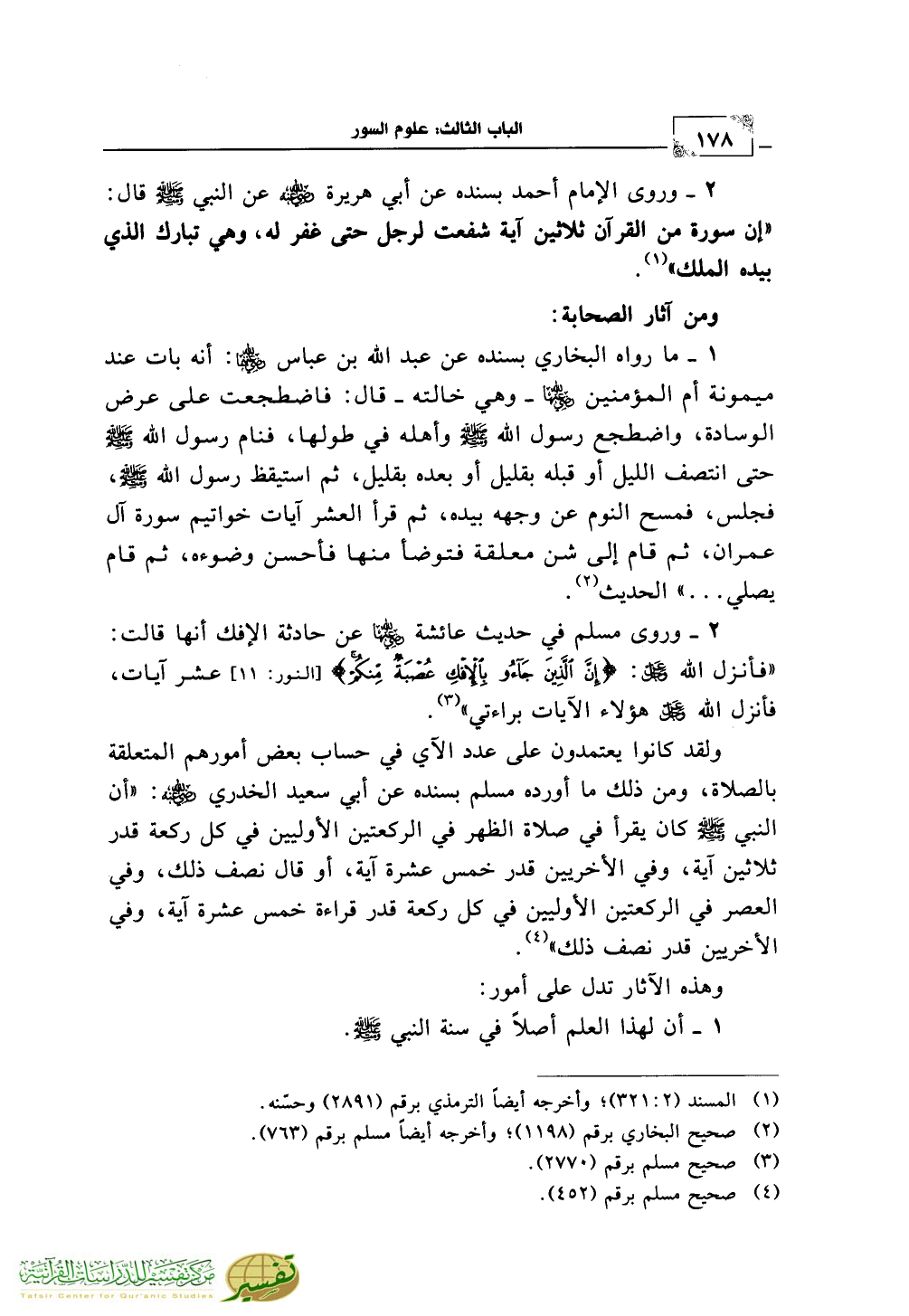 1 - أن لهذا العلم أصلاً في سنة النبي صلّى الله عليه وسلّم.