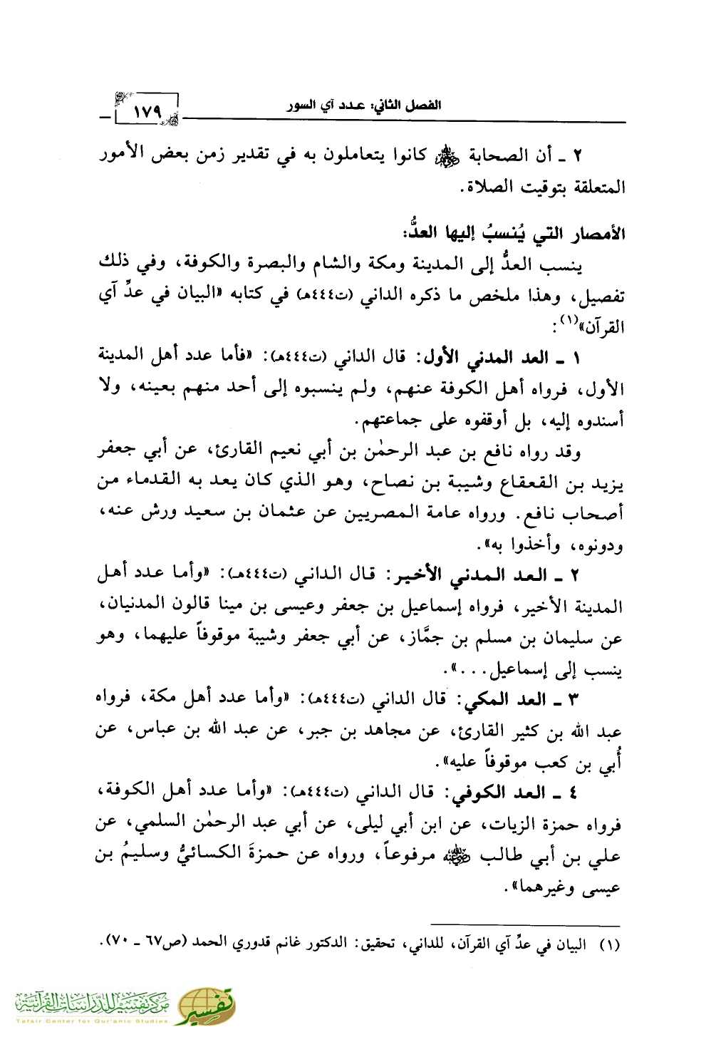 (¬1) البيان في عدِّ آي القرآن، للداني، تحقيق: الدكتور غانم قدوري الحمد (ص67 - 70).