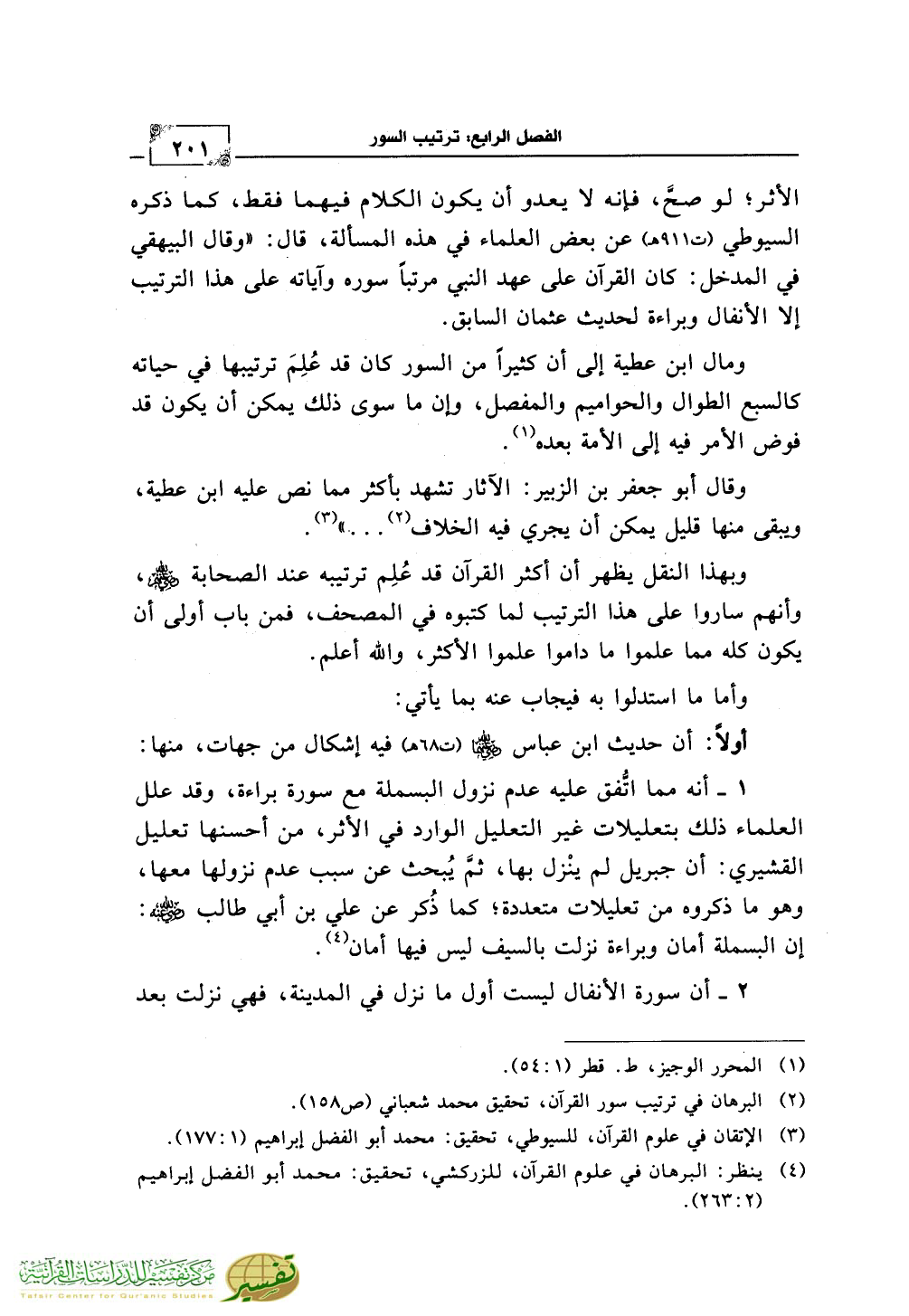 (¬4) ينظر: البرهان في علوم القرآن، للزركشي، تحقيق: محمد أبو الفضل إبراهيم (2:263).