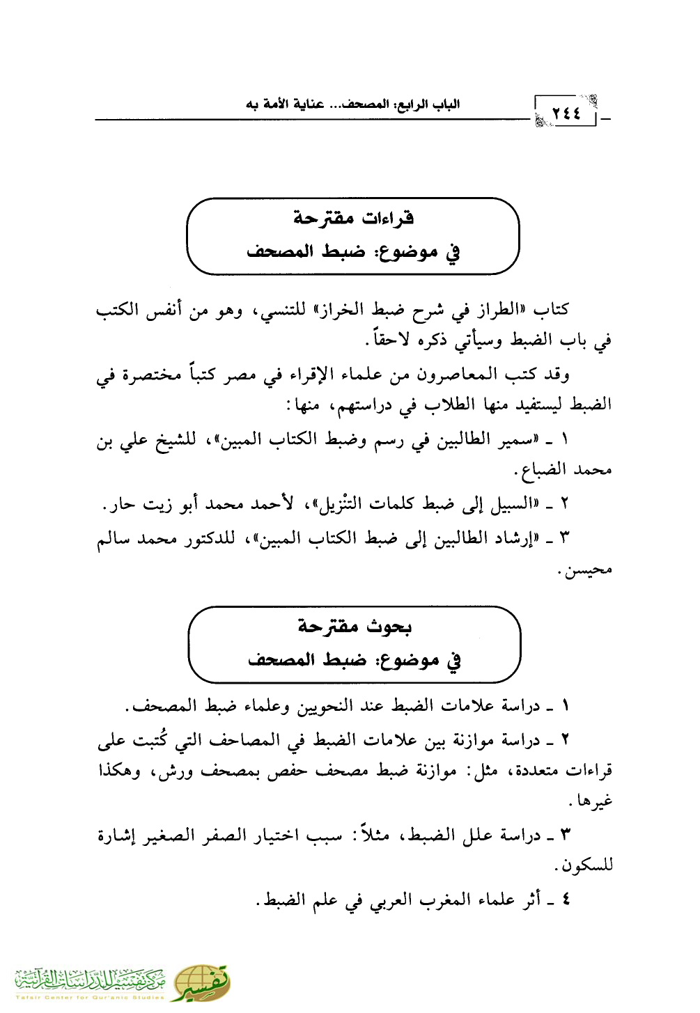 3 - دراسة علل الضبط، مثلاً: سبب اختيار الصفر الصغير إشارة للسكون.