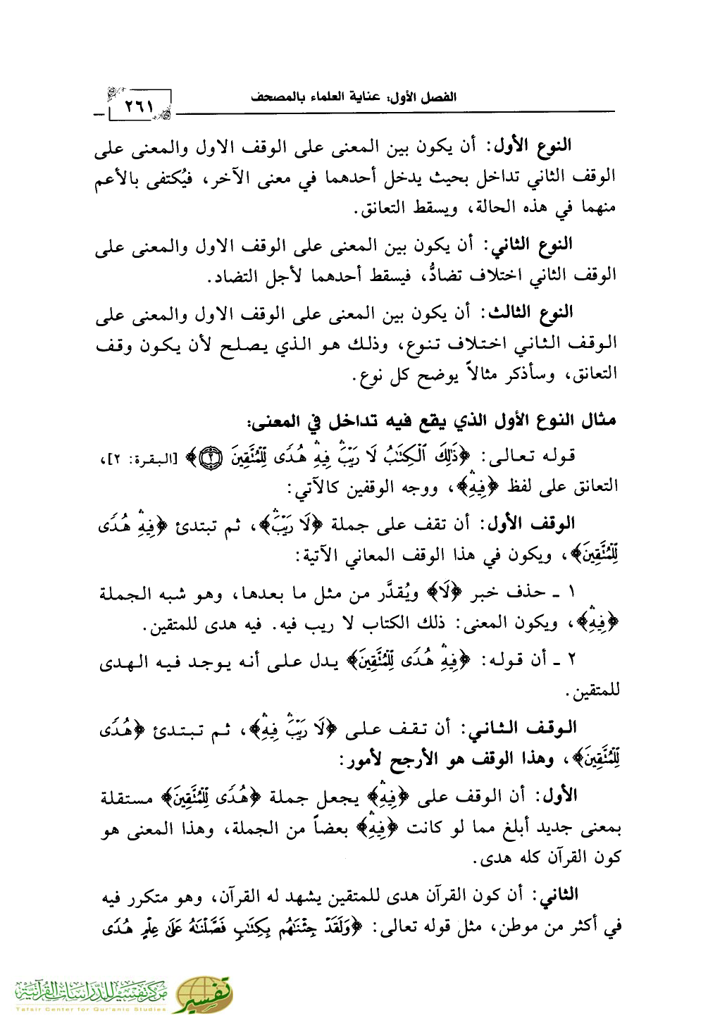 الوقف الثاني: أن تقف على {لاَ رَيْبَ فِيهِ}، ثم تبتدئ {هُدَىً لِلْمُتَّقِينَ}، وهذا الوقف هو الأرجح لأمور: