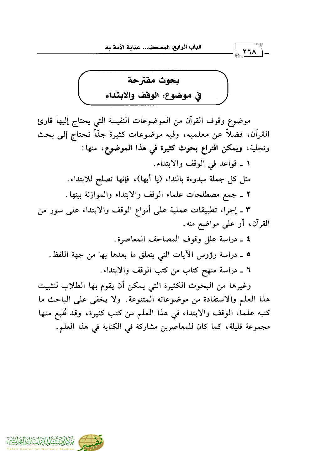 بحوث مقترحة في موضوع: الوقف والابتداء