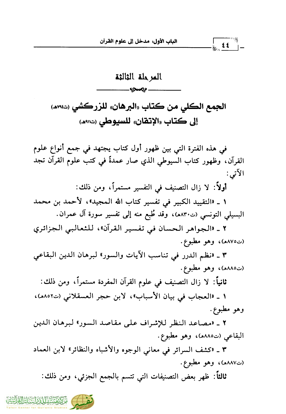 الجمع الكلي من كتاب «البرهان» للزركشي (ت794هـ) إلى كتاب «الإتقان» للسيوطي (ت911هـ)