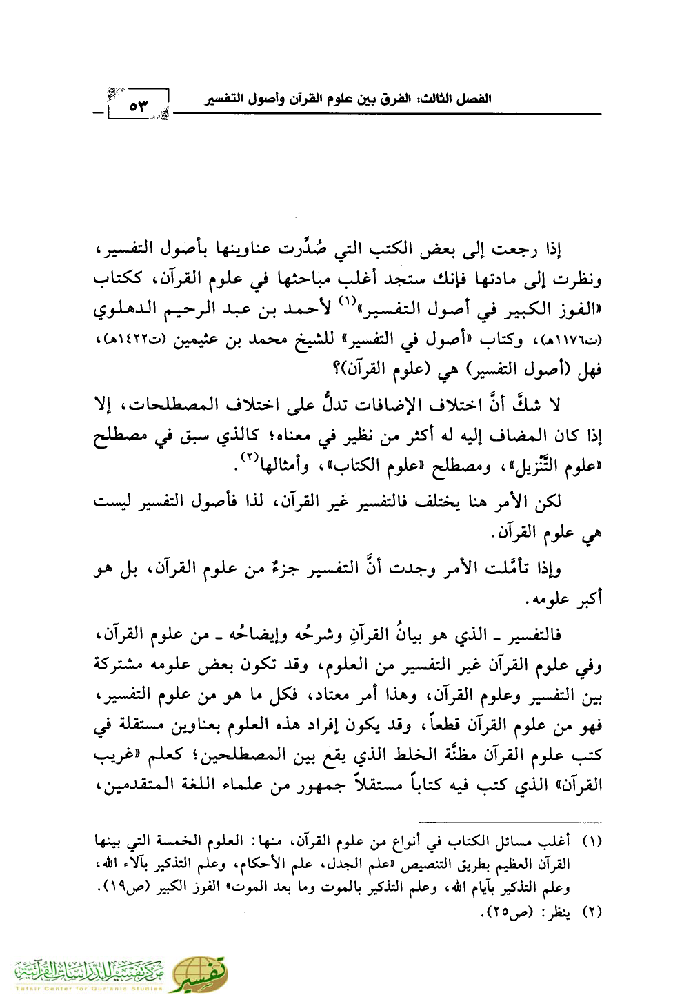 لكن الأمر هنا يختلف فالتفسير غير القرآن، لذا فأصول التفسير ليست هي علوم القرآن.