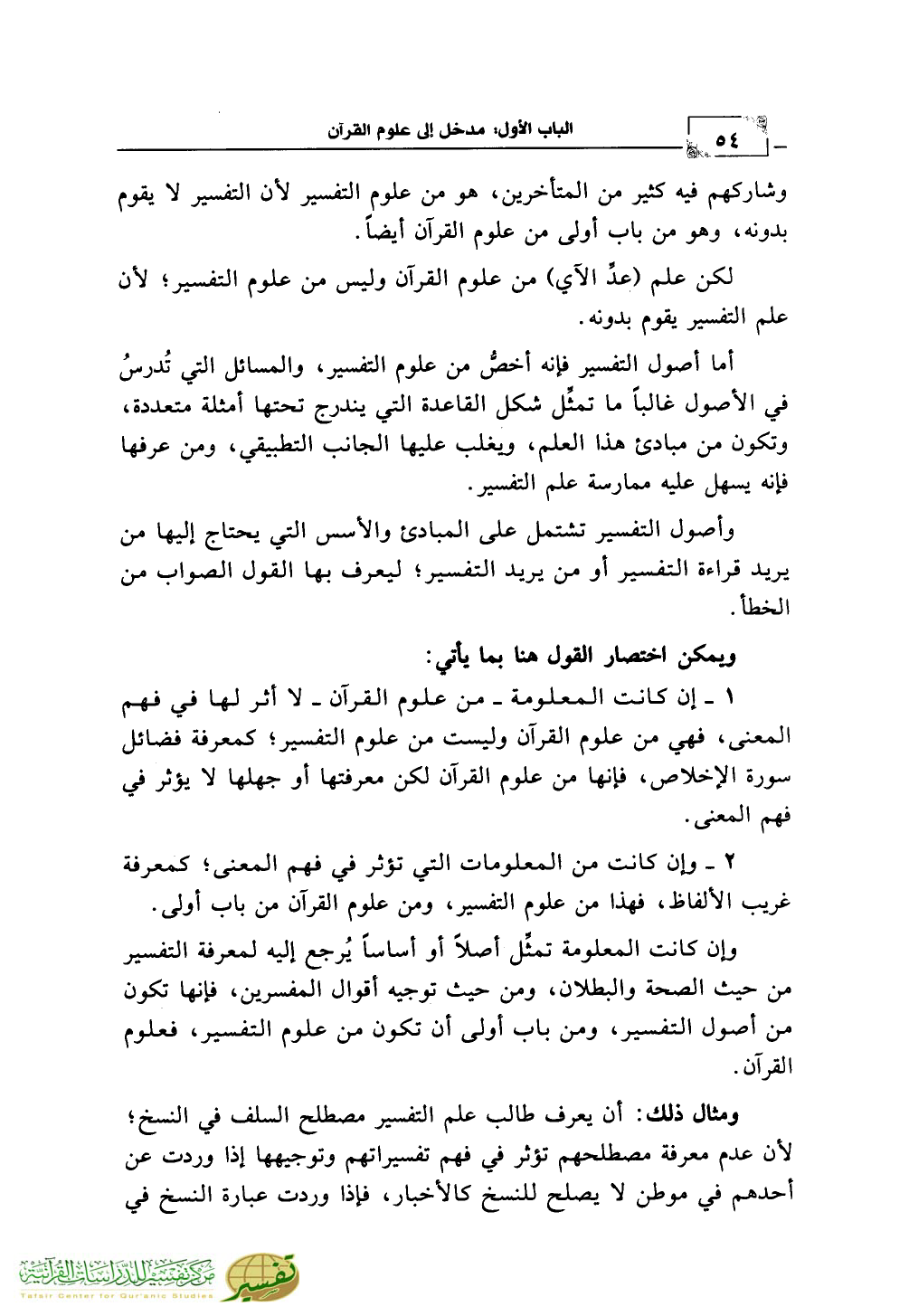 وشاركهم فيه كثير من المتأخرين، هو من علوم التفسير لأن التفسير لا يقوم بدونه، وهو من باب أولى من علوم القرآن أيضاً.