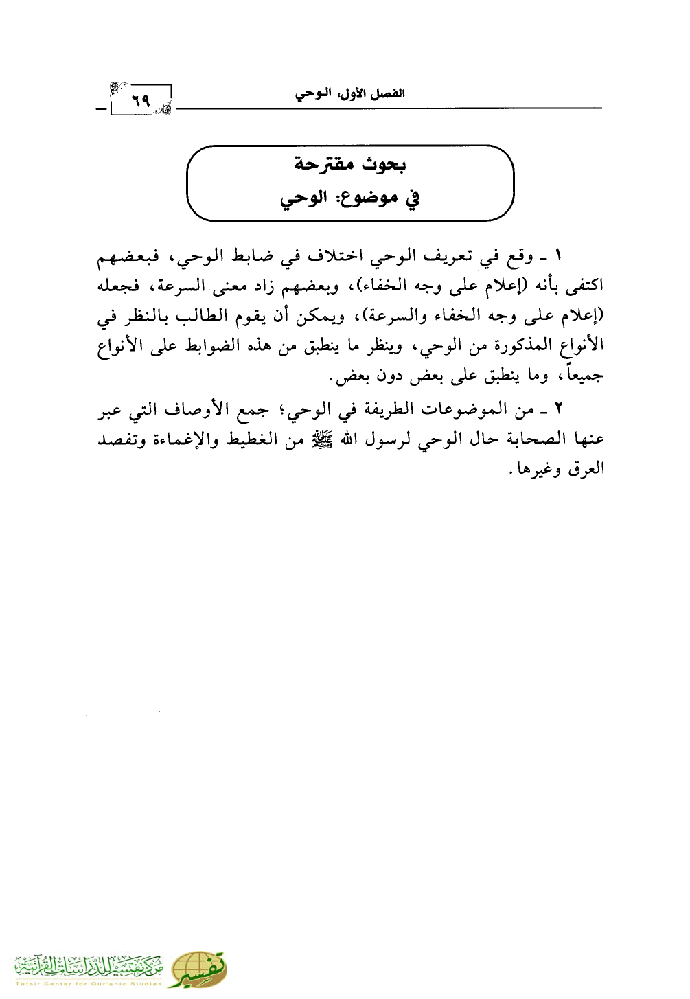 2 - من الموضوعات الطريفة في الوحي؛ جمع الأوصاف التي عبر عنها الصحابة حال الوحي لرسول الله صلّى الله عليه وسلّم من الغطيط والإغماءة وتفصد العرق وغيرها.