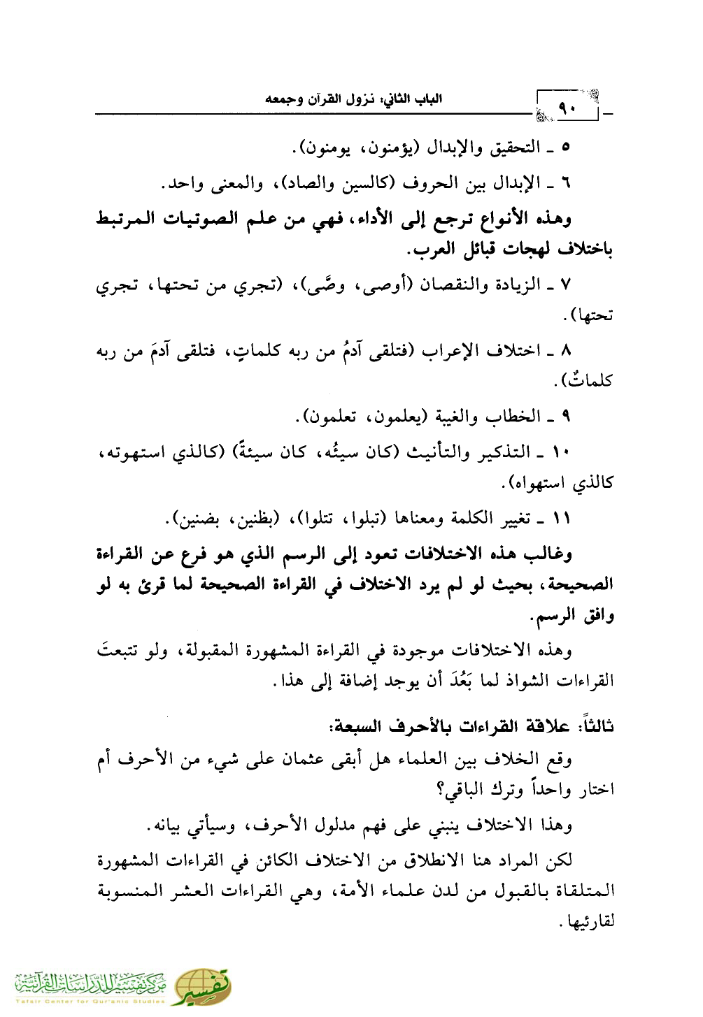 لكن المراد هنا الانطلاق من الاختلاف الكائن في القراءات المشهورة المتلقاة بالقبول من لدن علماء الأمة، وهي القراءات العشر المنسوبة لقارئيها.