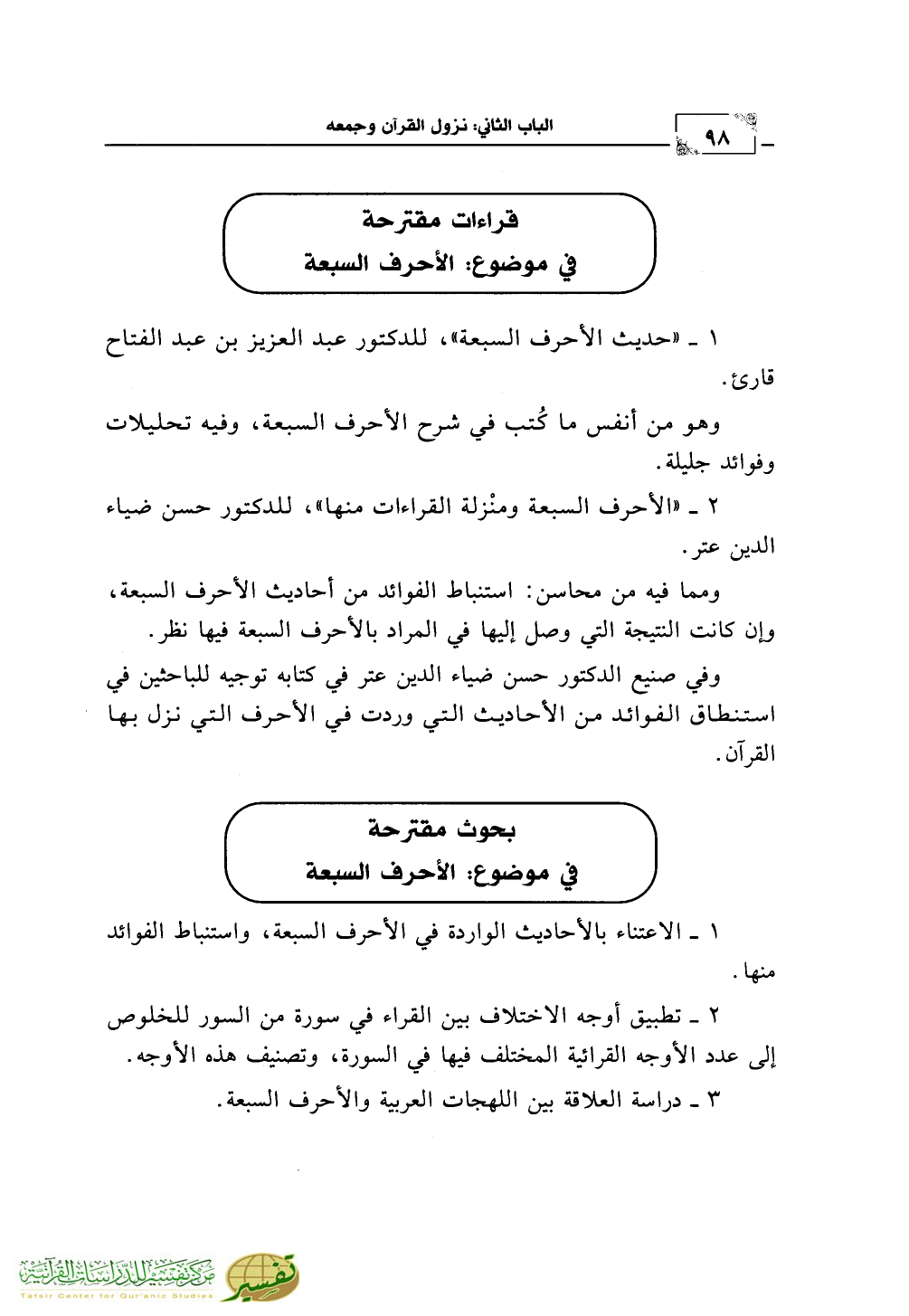 بحوث مقترحة في موضوع: الأحرف السبعة