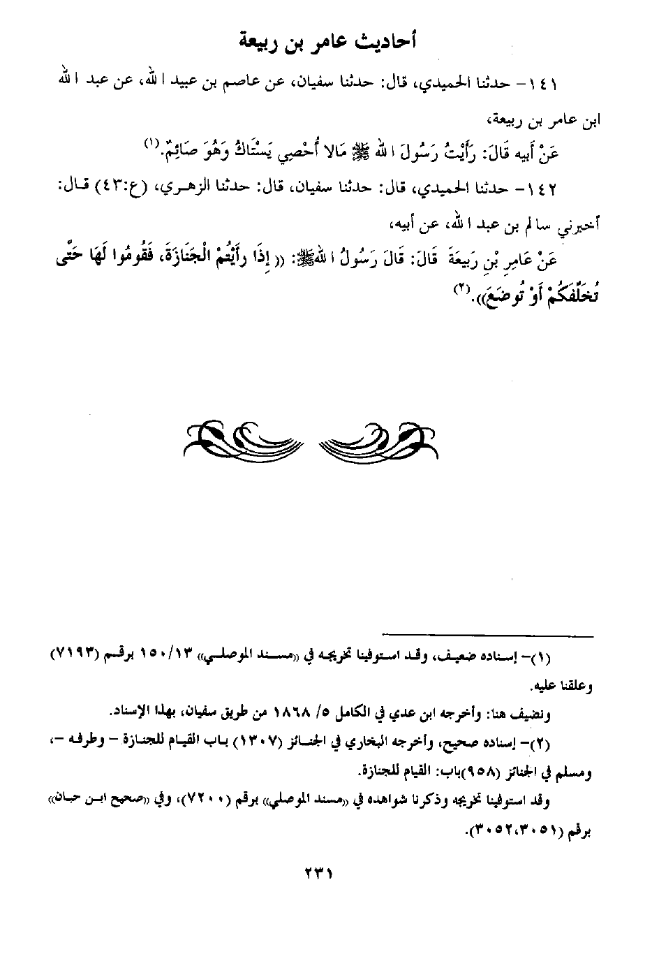 §أَحَادِيثُ عَامِرِ بْنِ رَبِيعَةَ رَضِيَ اللَّهُ عَنْهُ