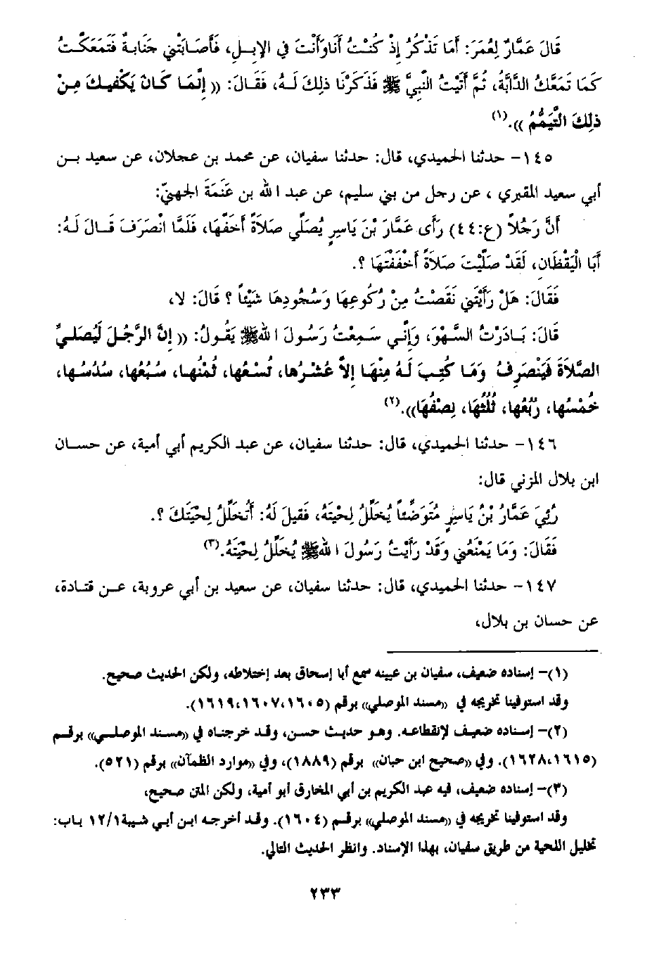 147 - حَدَّثَنَا الْحُمَيْدِيُّ، ثنا سُفْيَانُ، عَنْ سَعِيدِ بْنِ أَبِي عَرُوبَةَ، عَنْ قَتَادَةَ، عَنْ حَسَّانَ بْنِ بِلَالٍ -[234]-، عَنْ عَمَّارٍ عَنِ النَّبِيِّ صَلَّى اللهُ عَلَيْهِ وَسَلَّمَ بِمِثْلِهِ