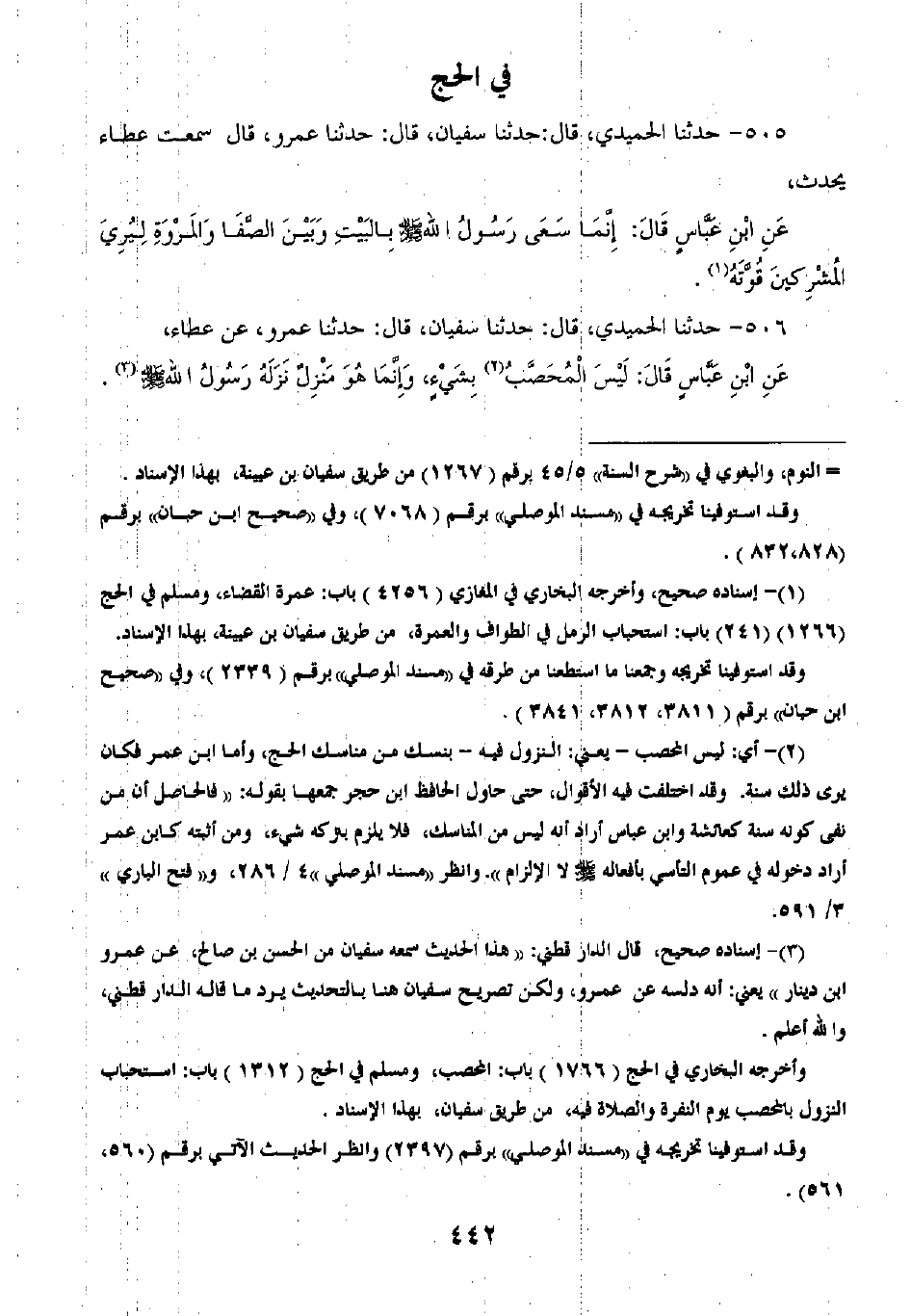 506 - حَدَّثَنَا الْحُمَيْدِيُّ قَالَ: ثنا سُفْيَانُ قَالَ: ثنا عَمْرٌو، عَنْ عَطَاءٍ، عَنِ ابْنِ عَبَّاسٍ قَالَ: «§لَيْسَ الْمُحَصَّبُ بِشَيْءٍ وَإِنَّمَا هُوَ مَنْزِلٌ نَزَلَهُ صَلَّى اللهُ عَلَيْهِ وَسَلَّمَ» -[443]-