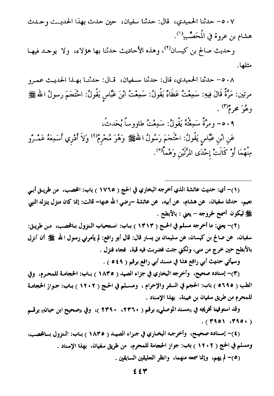 508 - حَدَّثَنَا الْحُمَيْدِيُّ قَالَ: ثنا سُفْيَانُ قَالَ: ثنا بِهَذَا الْحَدِيثِ عَمْرُوٌ مَرَّتَيْنِ مَرَّةً قَالَ فِيهِ: سَمِعْتُ عَطَاءً يَقُولُ: سَمِعْتُ ابْنَ عَبَّاسٍ يَقُولُ: «§احْتَجَمَ رَسُولُ اللَّهِ صَلَّى اللهُ عَلَيْهِ وَسَلَّمَ وَهُوَ مُحْرِمٌ»