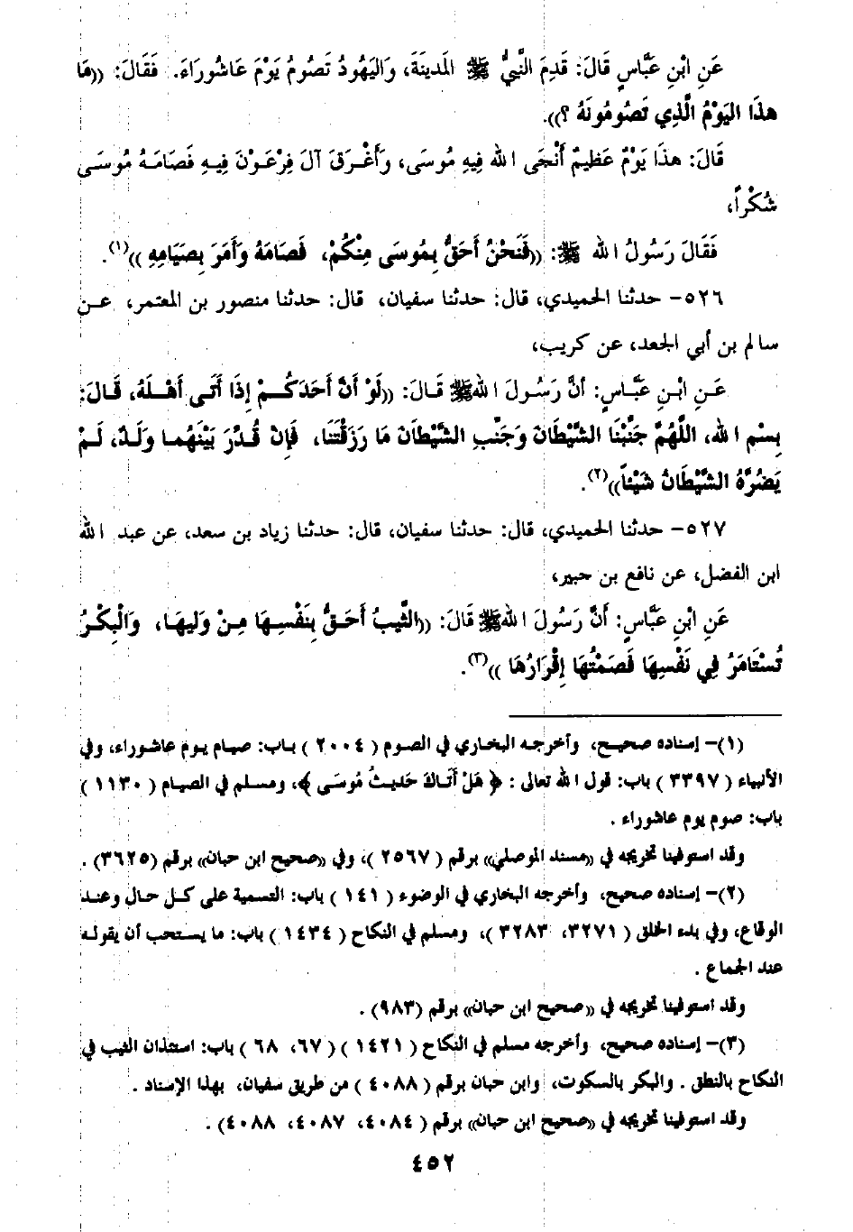 526 - حَدَّثَنَا الْحُمَيْدِيُّ قَالَ: ثنا سُفْيَانُ قَالَ: ثنا مَنْصُورُ بْنُ الْمُعْتَمِرِ، عَنْ سَالِمِ بْنِ أَبِي الْجَعْدِ، عَنْ كُرَيْبٍ، عَنِ ابْنِ عَبَّاسٍ أَنَّ رَسُولَ اللَّهِ صَلَّى اللهُ عَلَيْهِ وَسَلَّمَ قَالَ: «§لَوْ أَنَّ أَحَدَكُمْ إِذَا أَتَى أَهْلَهُ قَالَ بِسْمِ اللَّهِ اللَّهُمَّ جَنِّبْنَا الشَّيْطَانَ وَجَنِّبِ الشَّيْطَانَ مَا رَزَقْتَنَا فَإِنْ قُدِّرَ بَيْنَهُمَا وَلَدٌ لَمْ يَضُرَّهِ الشَّيْطَانُ شَيْئًا»