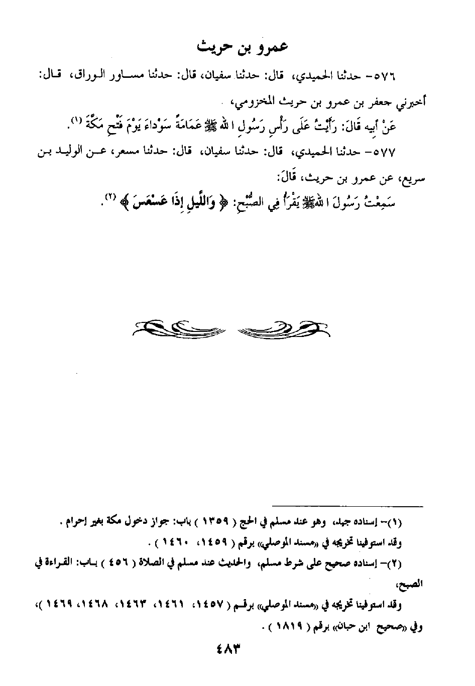 §حَدِيثَا عَمْرِو بْنِ حُرَيْثٍ رَضِيَ اللَّهُ عَنْهُ