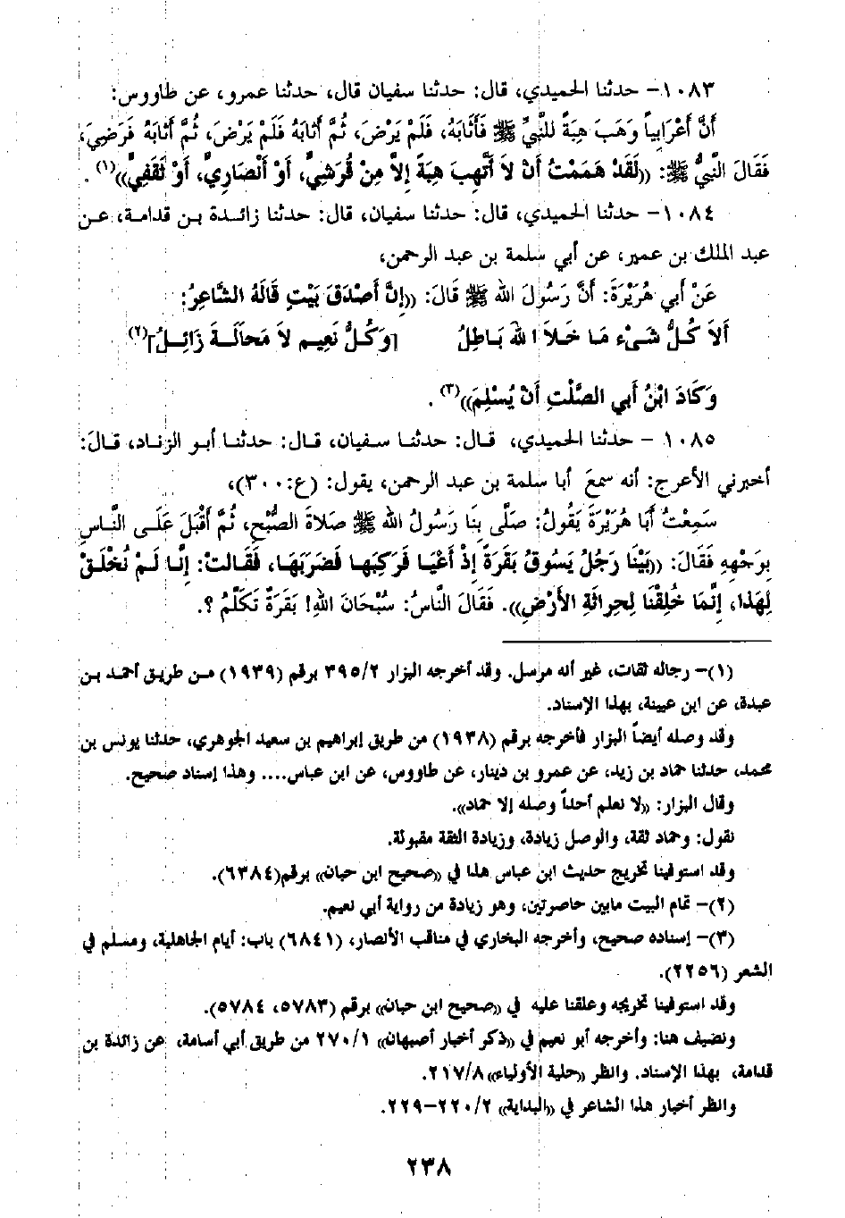 1083 - حَدَّثَنَا الْحُمَيْدِيُّ قَالَ: ثنا سُفْيَانُ، قَالَ: ثنا عَمْرٌو، وَابْنُ طَاوُسٍ، أَنَّ أَعْرَابِيًّا وَهَبَ هِبَةً لِلنَّبِيِّ صَلَّى اللهُ عَلَيْهِ وَسَلَّمَ فَأَثَابَهُ، فَلَمْ يَرْضَ، ثُمَّ أَثَابَهُ، فَلَمْ يَرْضَ، ثُمَّ أَثَابَهُ فَرَضِيَ، فَقَالَ النَّبِيُّ صَلَّى اللهُ عَلَيْهِ وَسَلَّمَ: «§لَقَدْ هَمَمْتُ أَنْ لَا أَتَهَبَّ هِبَةً إِلَّا مِنْ قُرَشَيٍّ، أَوْ أَنْصَارِيٍّ، أَوْ ثَقَفِيٍّ»