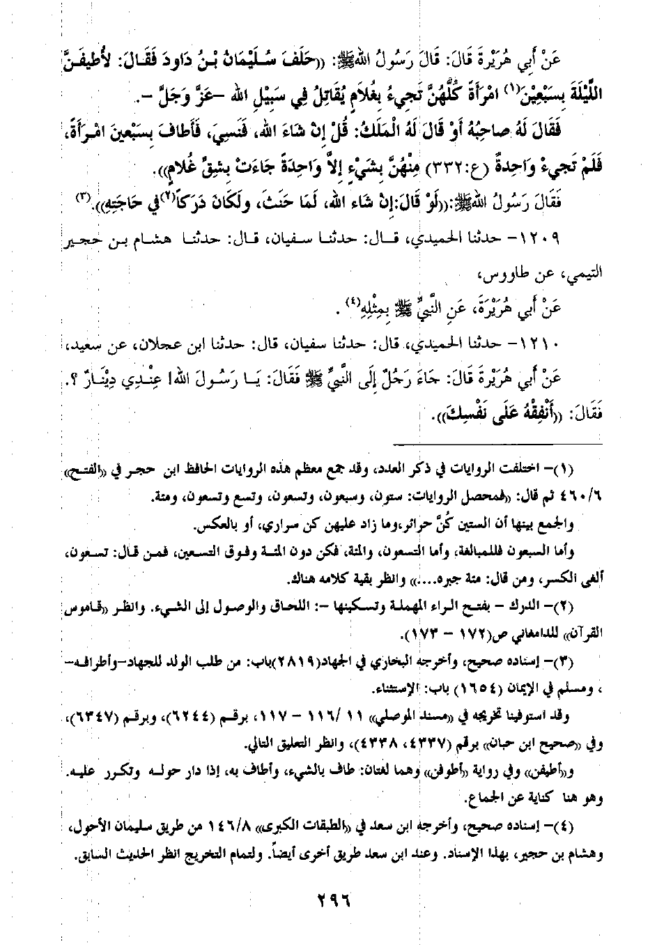 1210 - حَدَّثَنَا الْحُمَيْدِيُّ قَالَ: ثنا سُفْيَانُ، قَالَ: ثنا ابْنُ عَجْلَانَ، عَنْ سَعِيدٍ، عَنْ أَبِي هُرَيْرَةَ، قَالَ: جَاءَ رَجُلٌ إِلَى النَّبِيِّ صَلَّى اللهُ عَلَيْهِ وَسَلَّمَ، فَقَالَ: يَا رَسُولَ اللَّهِ، عِنْدِي دِينَارٌ فَقَالَ: «§أَنْفِقْهُ عَلَى نَفْسِكَ» -[297]-، قَالَ: عِنْدِي آخَرُ، قَالَ: «أَنْفِقْهُ عَلَى وَلَدِكَ» ، قَالَ: يَا رَسُولَ اللَّهِ عِنْدِي آخَرُ، قَالَ: «أَنْفِقْهُ عَلَى أَهْلِكَ» ، قَالَ: يَا رَسُولَ اللَّهِ عِنْدِي آخَرُ، قَالَ: «أَنْفِقْهُ عَلَى خَادِمِكَ» ، قَالَ: يَا رَسُولَ اللَّهِ عِنْدِي آخَرُ، قَالَ: «أَنْتَ أَعْلَمُ» ، قَالَ سَعِيدٌ: ثُمَّ يَقُولُ أَبُو هُرَيْرَةَ: إِذَا حَدَّثَ بِهَذَا الْحَدِيثِ، يَقُولُ وَلَدُكَ: أَنْفِقْ عَلَيَّ إِلَى مَنْ تَكِلُنِي، تَقُولُ زَوْجَتُكَ: أَنْفِقْ عَلَيَّ أَوْ طَلِّقْنِي، يَقُولُ خَادِمُكَ: أَنْفِقْ عَلَيَّ أَوْ بِعْنِي "