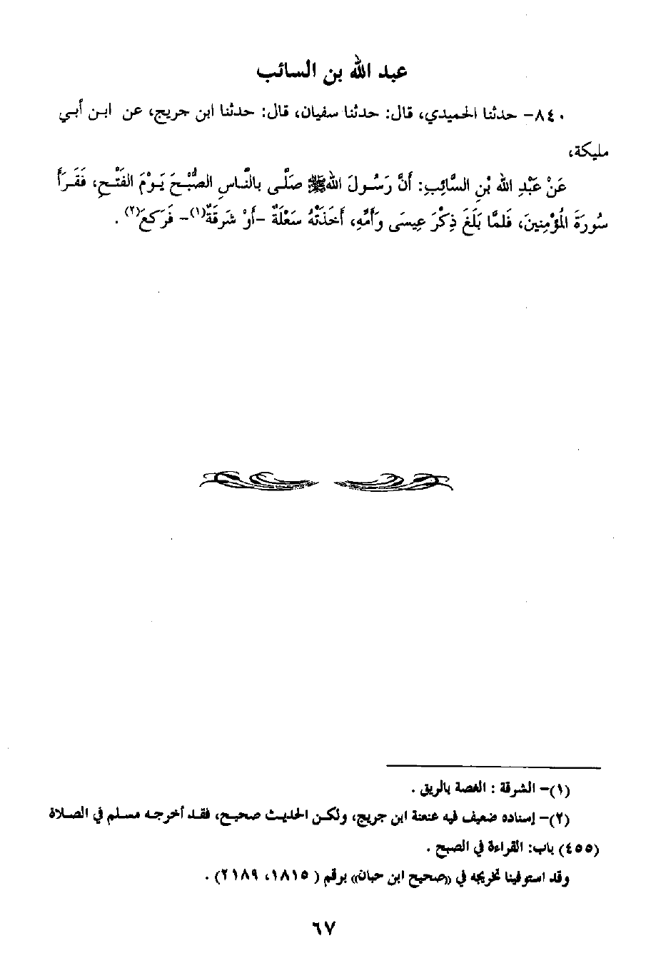§حَدِيثُ عَبْدِ اللَّهِ بْنِ السَّائِبِ رَضِيَ اللَّهُ عَنْهُ