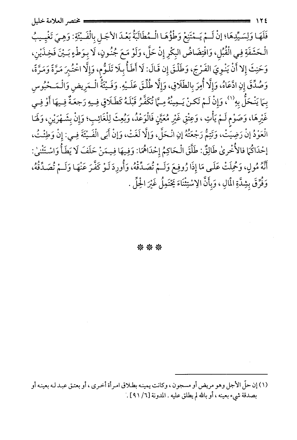 1- إن حل الأجل وهو مريض أو مسجون وكانت يمينه بطلاق امرأة أخرى أو بعتق عبد له بعينه أو بصدقة شي بعينه أو بالله لم يطلق عليه. المدونة [6 / 91] .