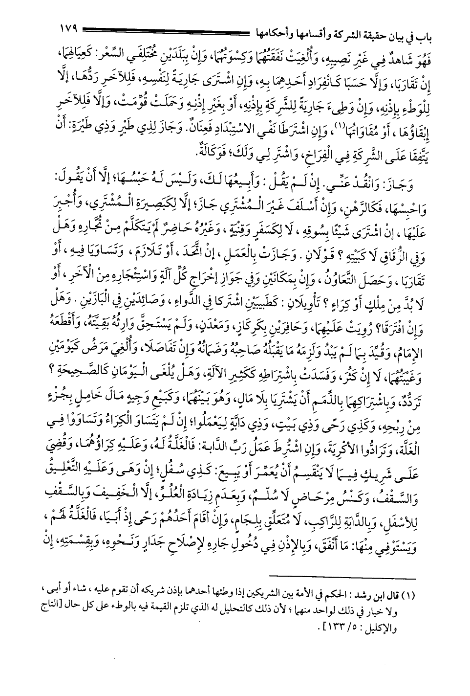 وَجَازَ: وَانْقُدْ عَنِّي إنْ لَمْ يَقُلْ: وَأَبِيعُهَا لك وليس له حبسها إلا أن يقول: واحبسها فكالرهن وَإِنْ أَسَلَفَ غَيْرَ الْمُشْتَرِي جَازَ إلَّا لِكَبَصِيرَةِ المشتري وَأُجْبِرَ عَلَيْهَا إنْ اشْتَرَى شَيْئًا بِسُوقِهِ لَا لِكَسَفَرٍ وَقِنْيَةٍ وَغَيْرُهُ حَاضِرٌ لَمْ يَتَكَلَّمْ مِنْ تُجَّارِهِ وَهَلْ وَفِي الزُّقَاقِ لَا كَبَيْتِهِ؟ قَوْلَانِ وَجَازَتْ بِالْعَمَلِ إنْ اتَّحَدَ أَوْ تَلَازَمَ وَتَسَاوَيَا فيه أو تقاربا وحصل التعاون وإن بمكانين وَفِي جَوَازِ إخْرَاجِ كُلِّ آلَةٍ وَاسْتِئْجَارِهِ مِنْ الْآخَرِ أَوْ لَا بُدَّ مِنْ مِلْكٍ أَوْ كراء؟ تأويلان كطبيبين اشتركا في الدواء وصائدين في البازين وهل وإن افترقا؟ رويت عليهما وحافرين بكركاز ومعدن وَلَمْ يَسْتَحِقَّ وَارِثُهُ بَقِيَّتَهُ وَأَقْطَعَهُ الْإِمَامُ وَقَيَّدَ بما لم يبد وَلَزِمَهُ مَا يَقْبَلُهُ صَاحِبُهُ وَضَمَانُهُ وَإِنْ تَفَاصَلَا وَأُلْغِيَ مَرَضٌ كَيَوْمَيْنِ وَغَيْبَتُهُمَا لَا إنْ كَثُرَ وفسدت باشتراطه ككثير الآلة وهل يلغى اليومان كالصحيحة؟ تردد وباشتراكهما بالذمم أن يشتريا بلا مال وهو بينهما وَكَبَيْعِ وَجِيهٍ مَالَ خَامِلٍ بِجُزْءٍ مِنْ رِبْحِهِ وَكَذِي رَحًى وَذِي بَيْتٍ وَذِي دَابَّةٍ لِيَعْمَلُوا إنْ لَمْ يَتَسَاوَ الْكِرَاءُ وَتَسَاوَوْا فِي الْغَلَّةِ وَتَرَادُّوا الْأَكْرِيَةَ وَإِنْ اُشْتُرِطَ عَمَلُ رَبِّ الدَّابَّةِ: فالغلة له وعليه كراؤهما وَقَضَى عَلَى شَرِيكٍ فِيمَا لَا يَنْقَسِمُ أَنْ يعمر أو يبيع: كذي سفل إن وهي وعليه التعليق والسقف وكنس مرحاض لا سلم وَبِعَدَمِ زِيَادَةِ الْعُلُوِّ إلَّا الْخَفِيفَ وَبِالسَّقْفِ لِلْأَسْفَلِ وبالدابة للراكب لا متعلق بلجام وإن أقام أحدهم رحى إذ أَبَيَا فَالْغَلَّةُ لَهُمْ وَيَسْتَوْفِي مِنْهَا: مَا أَنْفَقَ وَبِالْإِذْنِ فِي دُخُولِ جَارِهِ لِإِصْلَاحِ جِدَارٍ وَنَحْوِهِ وبقسمته إن