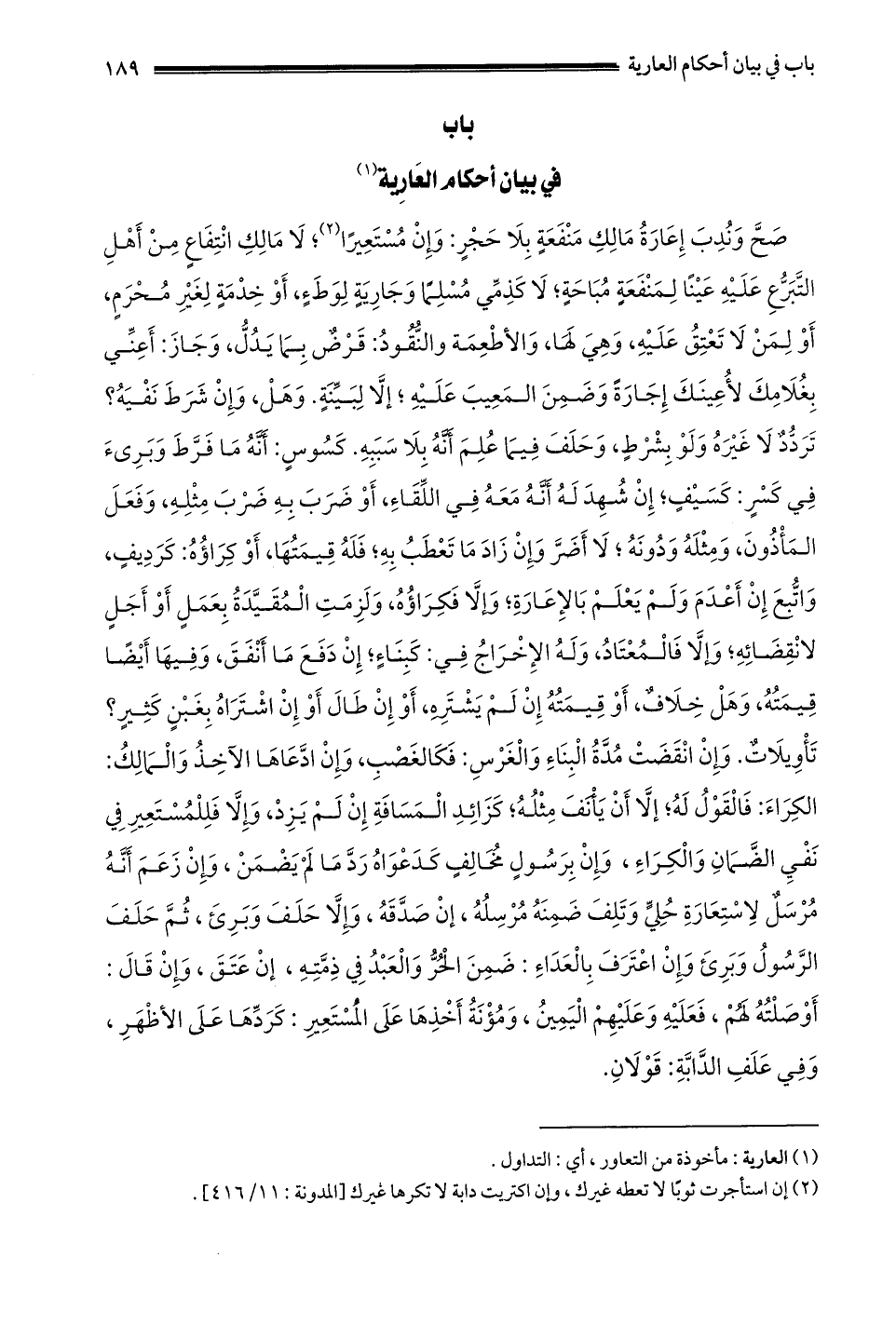 باب في بيان أحكام العارية 1