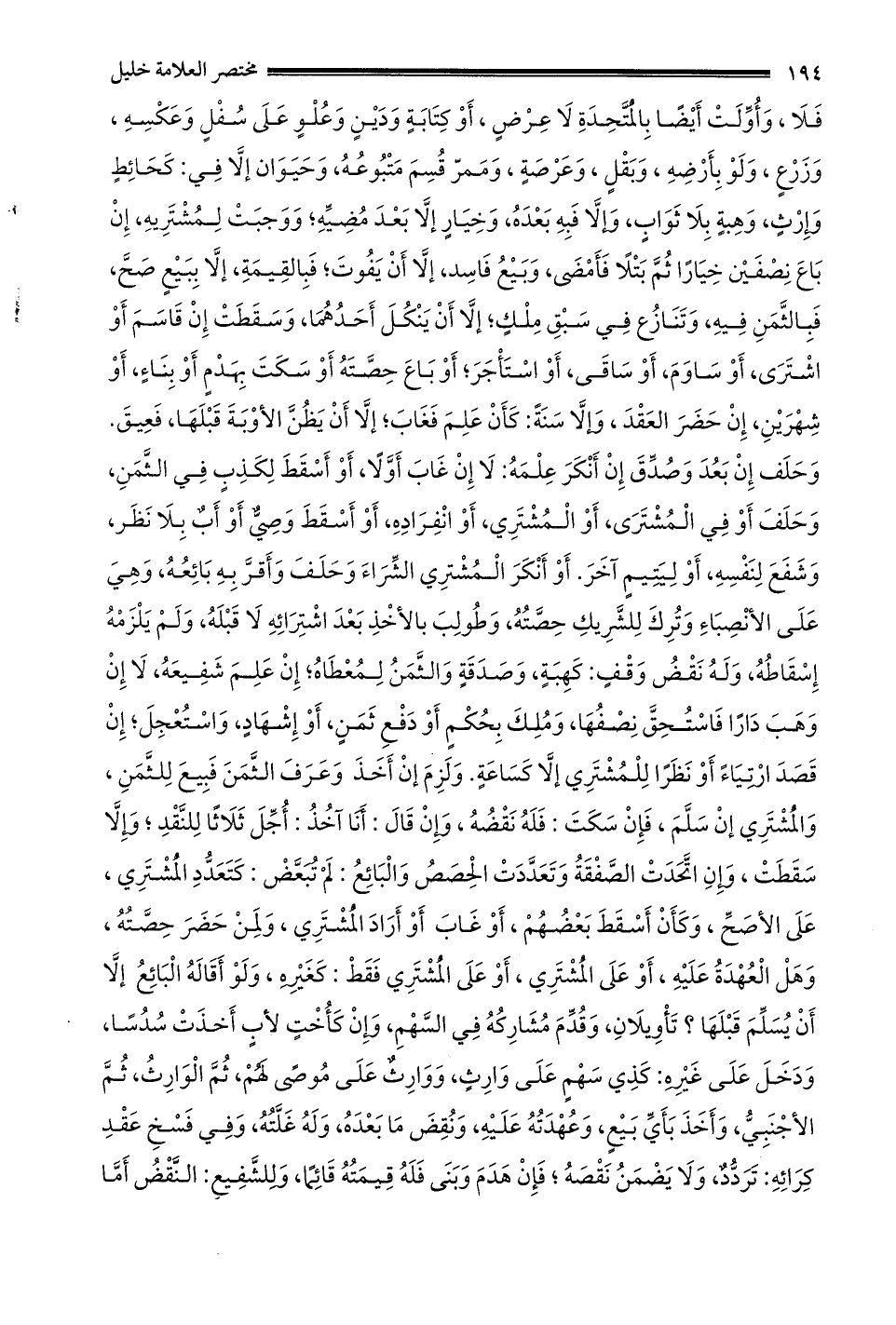فلا وأولت أيضا بالمتحدة لا عرض أو كتابة ودين وَعُلْوٍ عَلَى سُفْلٍ وَعَكْسِهِ وَزَرْعٍ وَلَوْ بِأَرْضِهِ وبقل وعرصة وممر قسم متبوعه وحيوان إلا في: كحائط وَإِرْثٍ وَهِبَةٍ بِلَا ثَوَابٍ وَإِلَّا فَبِهِ بَعْدَهُ وخيار إلا بعد مضيه وَوَجَبَتْ لِمُشْتَرِيهِ إنْ بَاعَ نِصْفَيْنِ خِيَارًا ثُمَّ بتلا فأمضى وبيع فسد إلا أن يفوت فبالقيمة إلا ببيع صح فبالثمن فيه وَتَنَازُعٍ فِي سَبْقِ مِلْكٍ إلَّا أَنْ يَنْكُلَ أحدهما وَسَقَطَتْ إنْ قَاسَمَ أَوْ اشْتَرَى أَوْ سَاوَمَ أَوْ سَاقَى أَوْ اسْتَأْجَرَ أَوْ بَاعَ حِصَّتَهُ أَوْ سَكَتَ بِهَدْمٍ أَوْ بِنَاءٍ أَوْ شَهْرَيْنِ إن حضر العقد وإلا سنة: كأن علم فغاب إلا أن يظن الأوبة قبلها فعيق وحلف إن بعد وَصُدِّقَ إنْ أَنْكَرَ عِلْمَهُ: لَا إنْ غَابَ أولا أَوْ أَسْقَطَ لِكَذِبٍ فِي الثَّمَنِ وَحَلَفَ أَوْ في المشترى أو جلمشتري أَوْ انْفِرَادِهِ أَوْ أُسْقِطَ وَصِيٌّ أَوْ أَبٌ بِلَا نَظَرٍ وشفع لنفسه أو ليتيم آخر أو أنكر المشتري الشراء وحلف وأقر به بائعه وهي على الأنصباء وترك للشريك حصته وطولب بالأخذ بعد اشترائه لا قبله ولم يلزمه إسقاطه وله نقض وقف: كهبة وصدقة والثمن لمعطاه إن علم شفيعه لا إن وهب دارا فاستحق نصفها وَمَلَكَ بِحُكْمٍ أَوْ دَفْعِ ثَمَنٍ أَوْ إشْهَادٍ وَاسْتُعْجِلَ إنْ قَصَدَ ارْتِيَاءً أَوْ نَظَرًا لِلْمُشْتَرَى إلا كساعة ولزم إن أخذ وعرف الثمن فبيع للثمن والمشتري إن سلم فإن سكت: فله نقصه وَإِنْ قَالَ: أَنَا آخُذُ: أُجِّلَ ثَلَاثًا لِلنَّقْدِ وإلا سقطت وإن اتحدت الصفقة وتعدت الحصص والبائع: لم تبعض: كتعدد المشتري على الأصح وكأن أسقط بعضهم أو غاب أو أراد المشتري ولمن حضر حصته وَهَلْ الْعُهْدَةُ عَلَيْهِ أَوْ عَلَى الْمُشْتَرِي أَوْ على المشتري فقط: كغيره ولو أقاله البائع إلا أن يسلم قبلها؟ تأويلان وَقُدِّمَ مُشَارِكُهُ فِي السَّهْمِ وَإِنْ كَأُخْتٍ لِأَبٍ أخذت سدسا ودخل على غيره: كذي سهم على وارث ووارث على موصى لهم ثم الوارث ثم الأجنبي وأخذ بأي بيع وعهدته عليه ونقض ما بعده وَلَهُ غَلَّتُهُ وَفِي فَسْخِ عَقْدِ كِرَائِهِ: تَرَدُّدٌ ولا يضمن نقصه فَإِنْ هَدَمَ وَبَنَى فَلَهُ قِيمَتُهُ قَائِمًا وَلِلشَّفِيعِ: النقض أما.