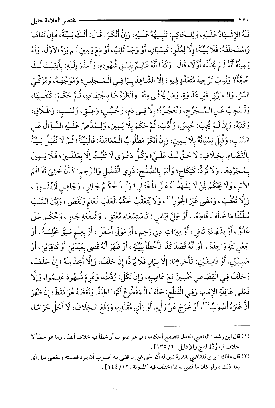 1- قال ابن رشد: القاضي العدل أحكامه فما هو صواب أو خطا فيه خلاف أنفذ وماهو خطأ لا خلاف فيه رد [التاج والإكليل: 6 / 135] .