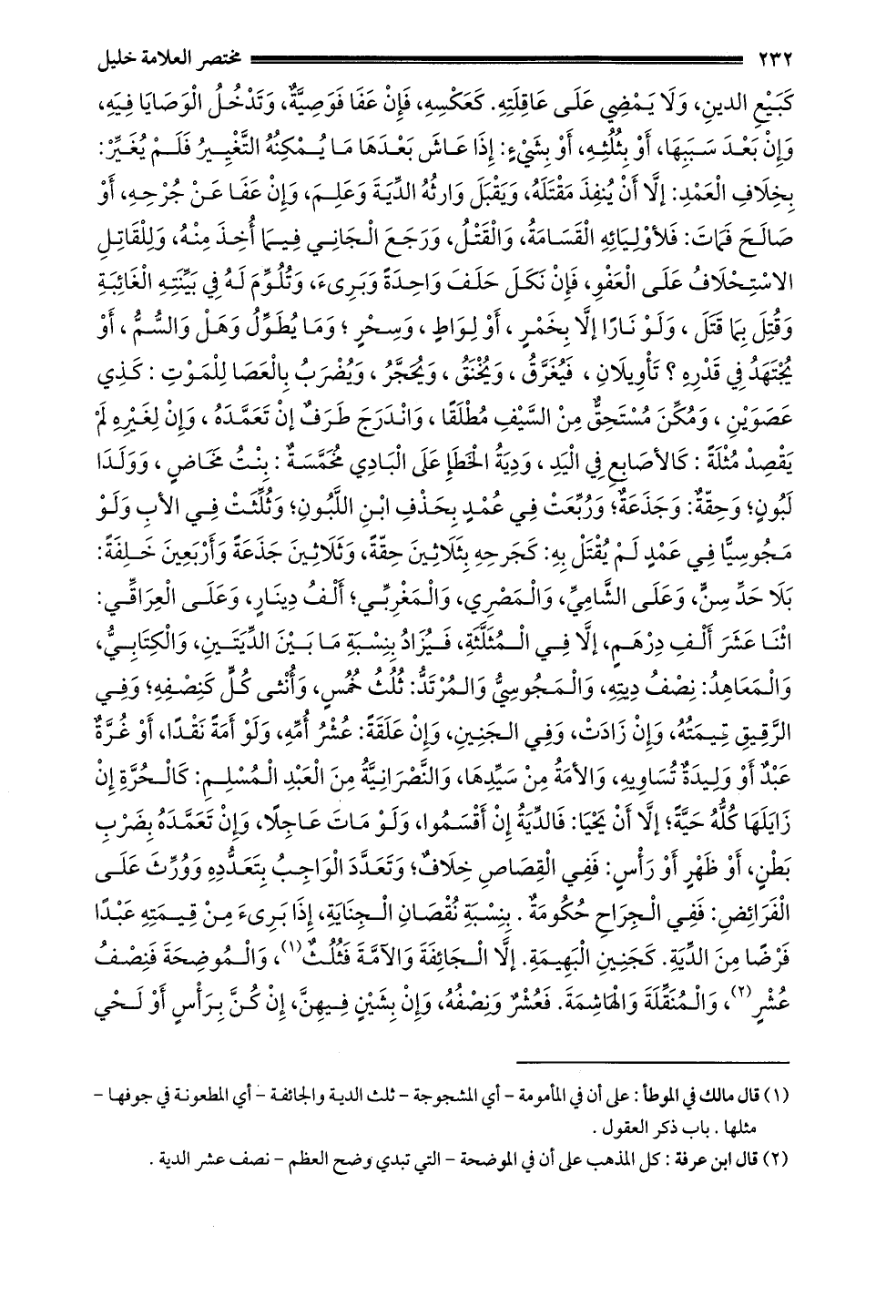 1- قال مالك في الموطأ: على أن في المأمومة – أي المشجوجة – ثلث الدية والجائفة – أي المطعونة في جوفها – مثلها. باب ذكر العقول.
