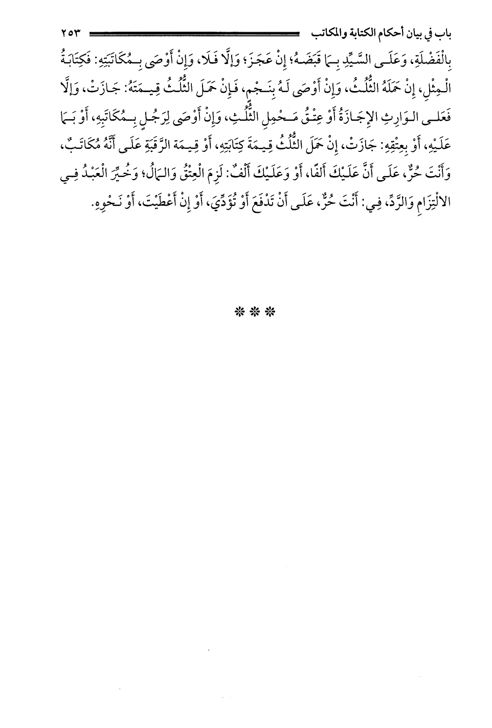 بِالْفَضْلَةِ وَعَلَى السَّيِّدِ بِمَا قَبَضَهُ إنْ عَجَزَ وإلا فلا وإن أوصى بمكاتبته: فكتابة المثل إن حمله الثلث وَإِنْ أَوْصَى لَهُ بِنَجْمٍ فَإِنْ حَمَلَ الثُّلُثُ قِيمَتَهُ: جَازَتْ وَإِلَّا فَعَلَى الْوَارِثِ الْإِجَازَةُ أَوْ عتق محمل الثلث وَإِنْ أَوْصَى لِرَجُلٍ بِمُكَاتَبِهِ أَوْ بِمَا عَلَيْهِ أَوْ بِعِتْقِهِ: جَازَتْ إنْ حَمَلَ الثُّلُثُ قِيمَةَ كِتَابَتِهِ أَوْ قِيمَةَ الرَّقَبَةِ عَلَى أَنَّهُ مُكَاتَبٌ وَأَنْتَ حُرٌّ عَلَى أَنَّ عَلَيْك أَلْفًا أَوْ وَعَلَيْكَ أَلْفٌ: لَزِمَ الْعِتْقُ وَالْمَالُ وَخُيِّرَ الْعَبْدُ في الالتزام والرد في: أنت حُرٍّ عَلَى أَنْ تَدْفَعَ أَوْ تُؤَدِّي أَوْ إن أعطيت أو نحوه.