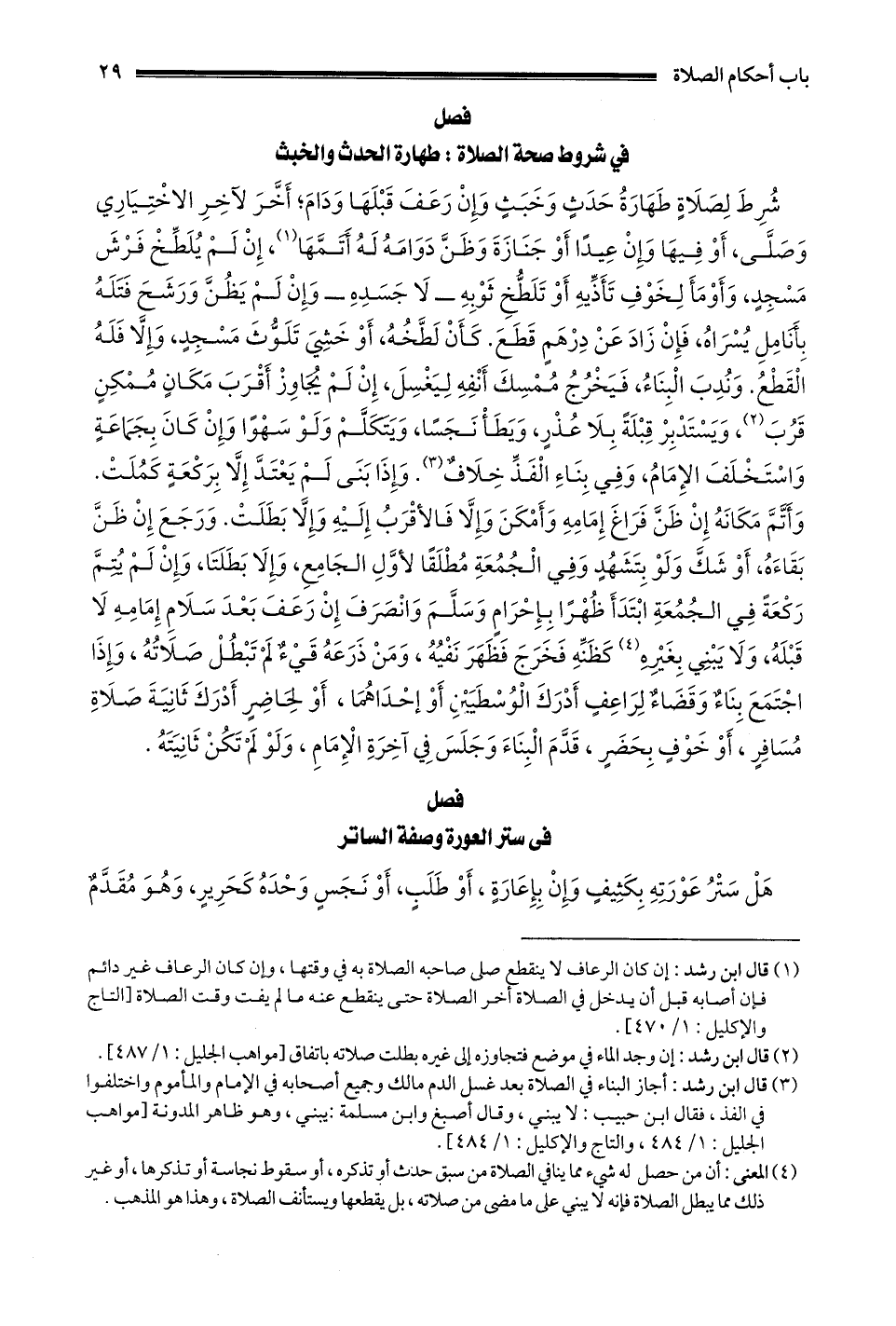 3- قال ابن رشد: أجاز البناء في الصلاة بعد غسل الدم مالك وجميع أصحابه في الإمام والمأموم واختلفوا في الفذ فقال ابن حبيب: لا يبني وقال أصبغ وابن مسلمة: يبني وهو ظافر المدونة [مواهب الجليل: 1 / 484 والتاج والإكليل: 1/484] .