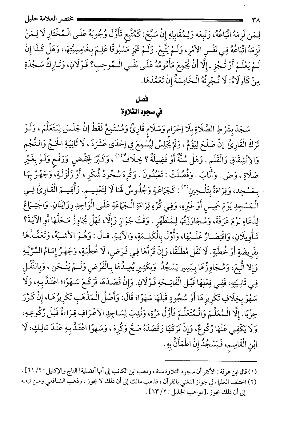 1- قال ابن عرفة: الأكثر أن سجود التلاوة سنة وذهب ابن الكاتب إلى أنها أفضلية [التاج والإكليل: 2 /61] .