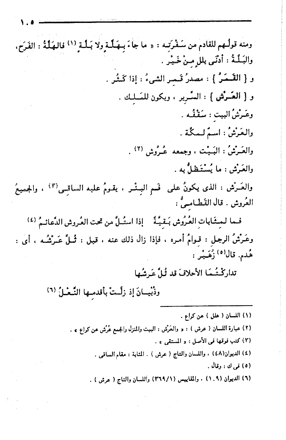 وعَرْش الرجلِ: قِوامُ أمره، فإذا زال ذلك عنه قيل: ثُلَّ عَرْشُه، أي: هُدِمَ؛ قال زُهَيْر: [الطويل]