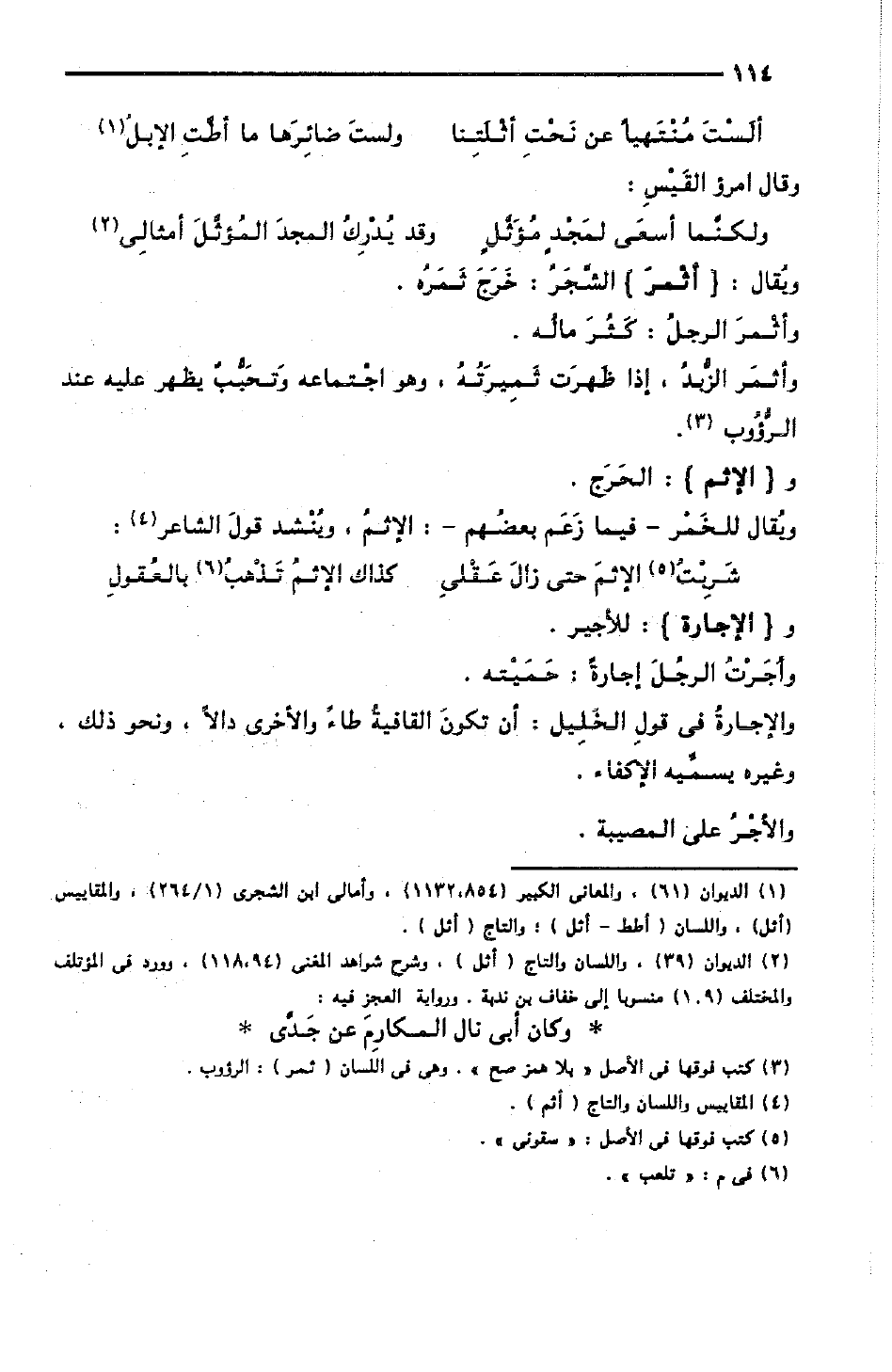 ويُقال للخَمْر - فيما زَعَم بعضُهم -: الإثمُ، ويُنْشد قول الشاعر: [الوافر]