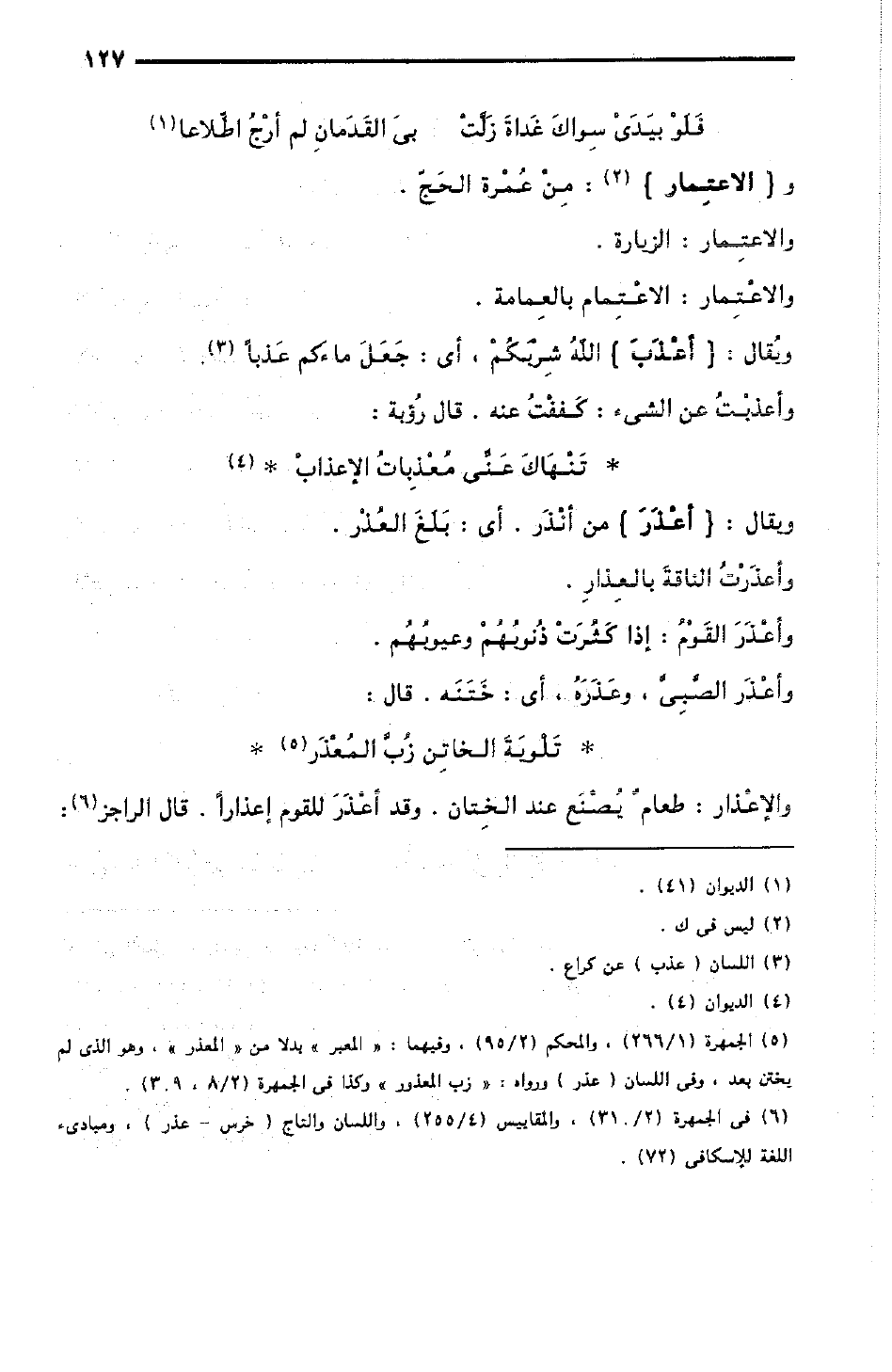 وأعْذَرَ الصَّبِيَّ، وعَذَرَهُ، أي: خَتَنَه؛ قال: [الرجز]