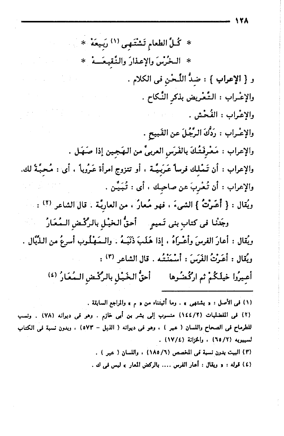 ويُقال: أعَرْتُ الفَرَسَ: أَسْمَنْتُهُ، قال الشاعر: [الوافر]