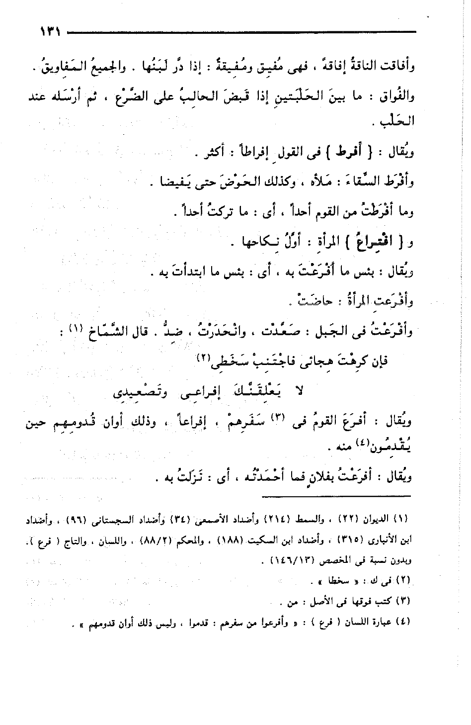 وأُفْرَعْت في الجَبل: صَعَّدْتُ، وانْحَدَرْتُ، ضِدٌّ؛ قال الشَّمّاخ: [البسيط]