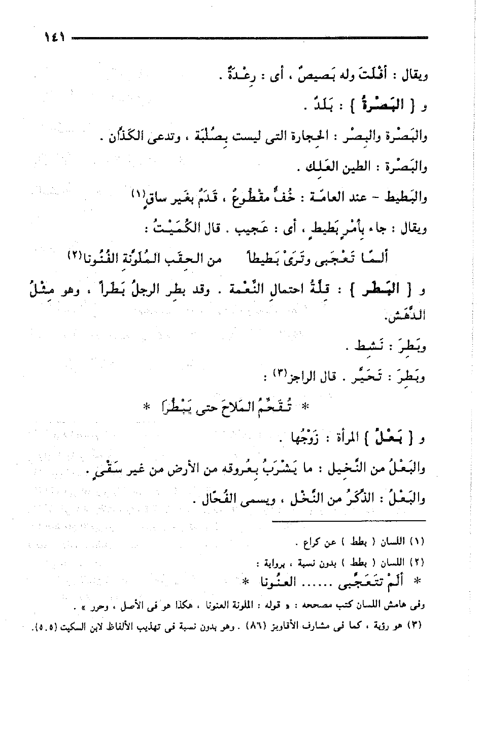 ويقال: جاء بأمرٍ بَطِيط، أي: عَجيب، قال الكُمَيْتُ: [الوافر]