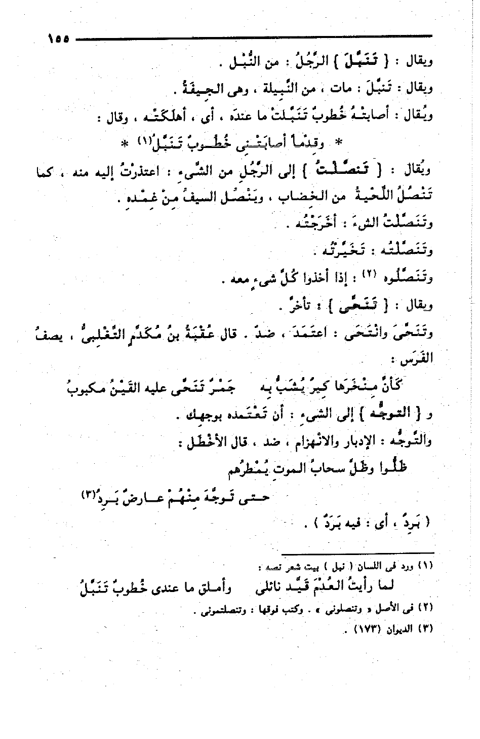 ويقال: تَنبَّلَ: مات، من النَّبِيلة، وهي الجِيفَةُ.