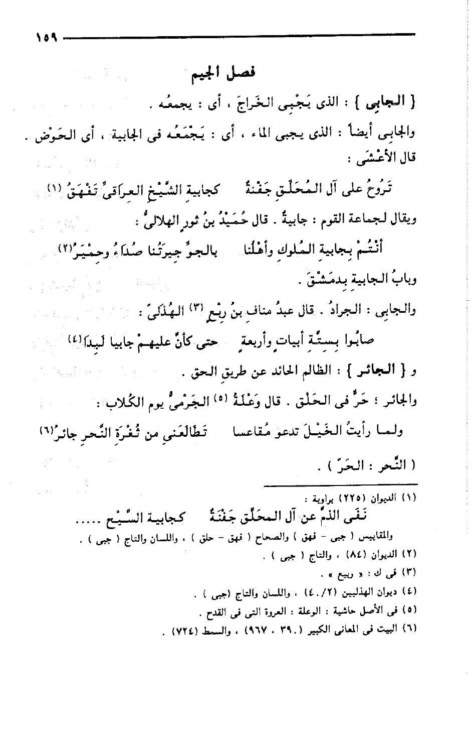 والجابِي أيضًا: الذي يَجْبي الماء، أي: يَجْمَعُه في الجابية، أي: الحَوْض؛ قال الأعْشَى: [الطويل]