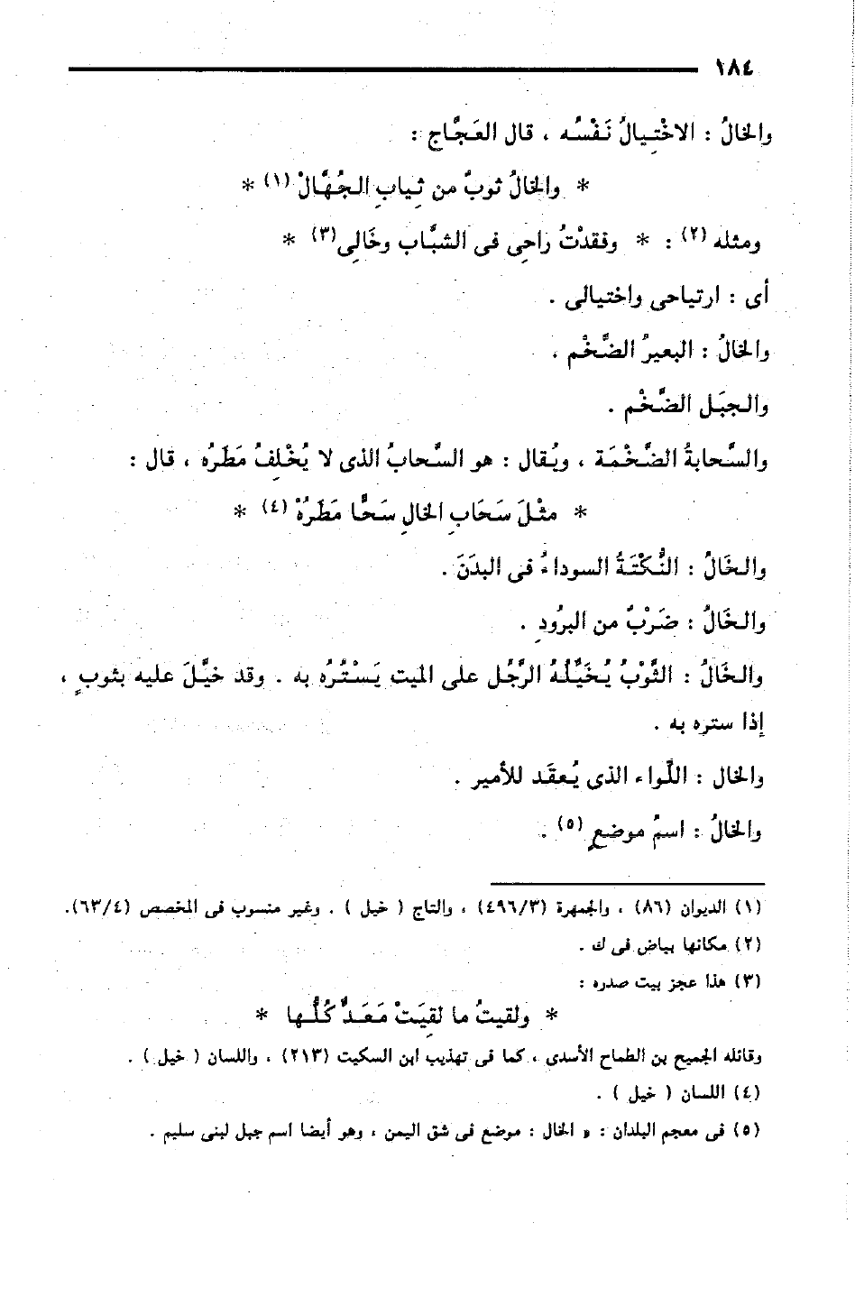 والخالُ: الاخْتِيال نَفْسُه، قال العَجّاج: [الرجز]