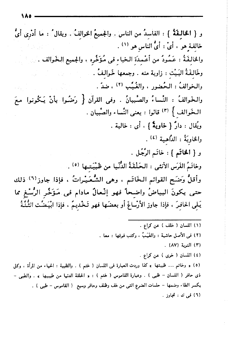 والخَوالف: النِّساء والصِّبيانُ، وفي القرآن: {رَضُوا بِأَنْ يَكُونُوا معَ الخَوالِفِ} [سورة التوبة/ 78]، قالوا: يعني النِّساءَ والصِّبيانَ.